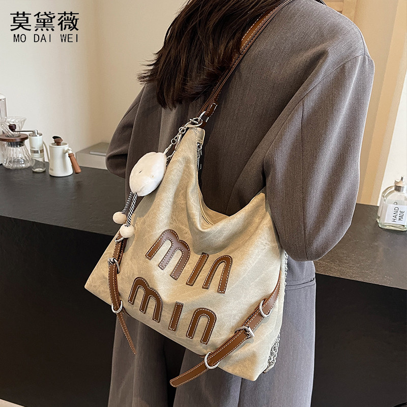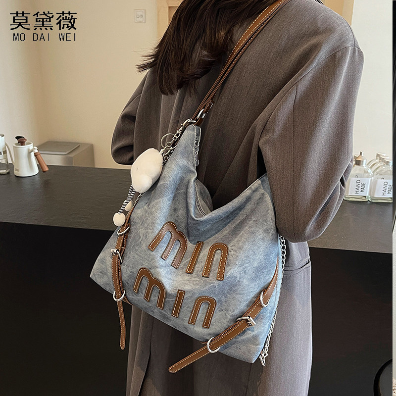 莫黛薇休闲牛仔布包2024新款潮时尚通勤单肩包大容量托特包购物袋