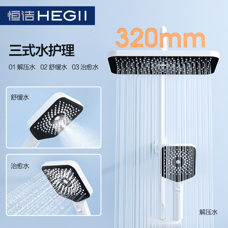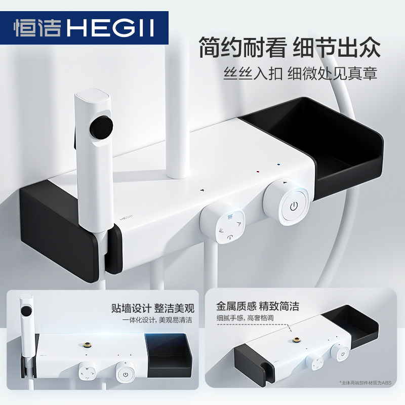 恒洁卫浴淋浴器花洒套装家用浴室明装大置物平台沐浴枪灰色Y30