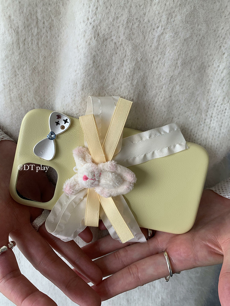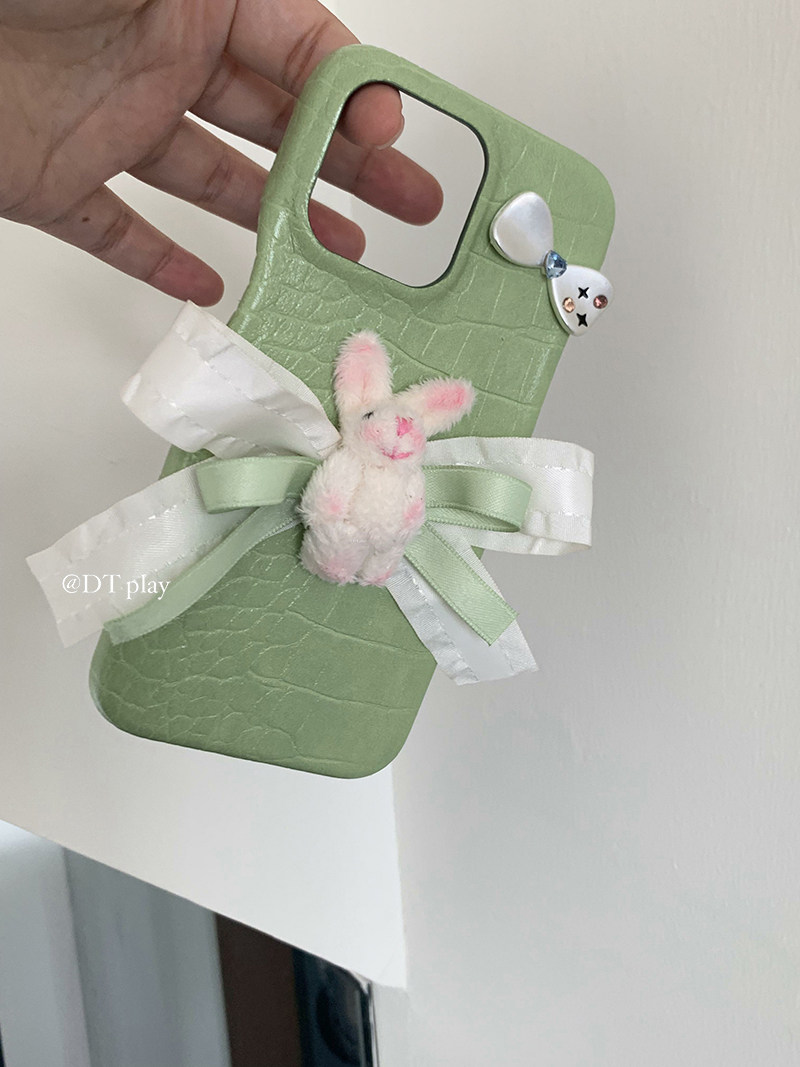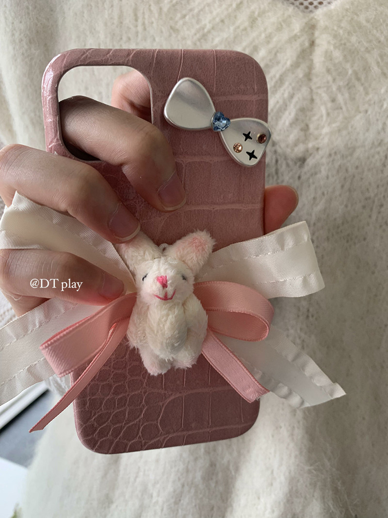 DT play 可爱兔兔 撞色皮质 韩国小众人气博主同款适用于iphone16promax苹果11/12/14/13/15手机壳保护套