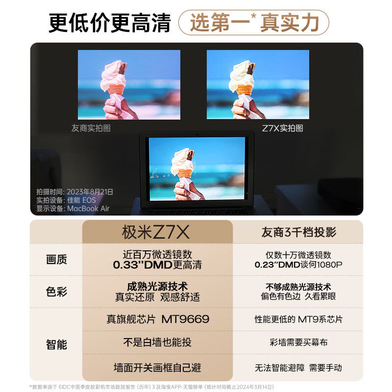 【人气明星爆款】极米Z7X投影仪家用1080P全高清高亮度轻薄便携智