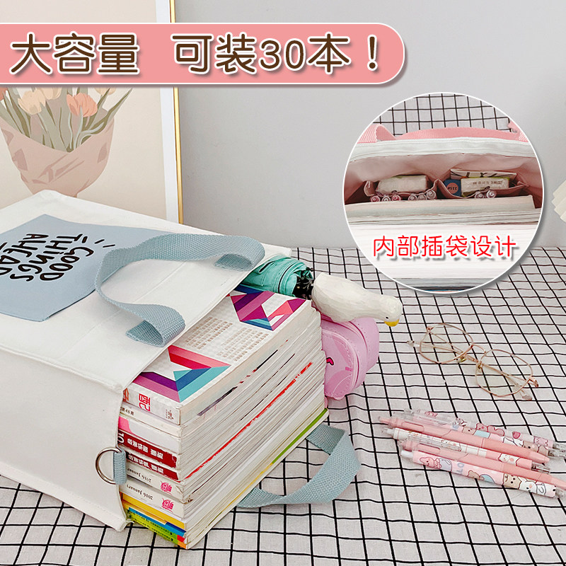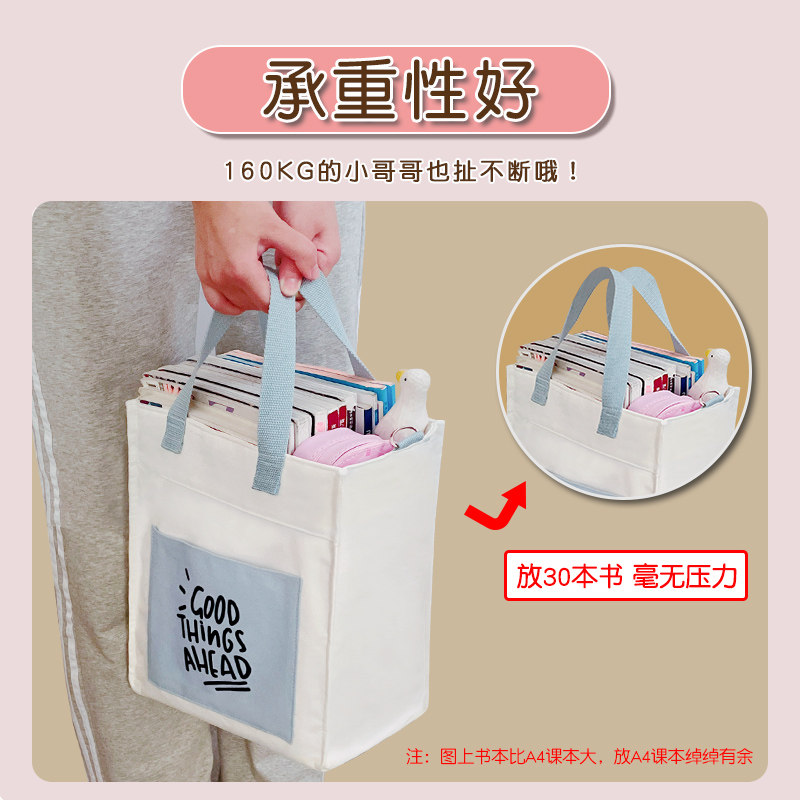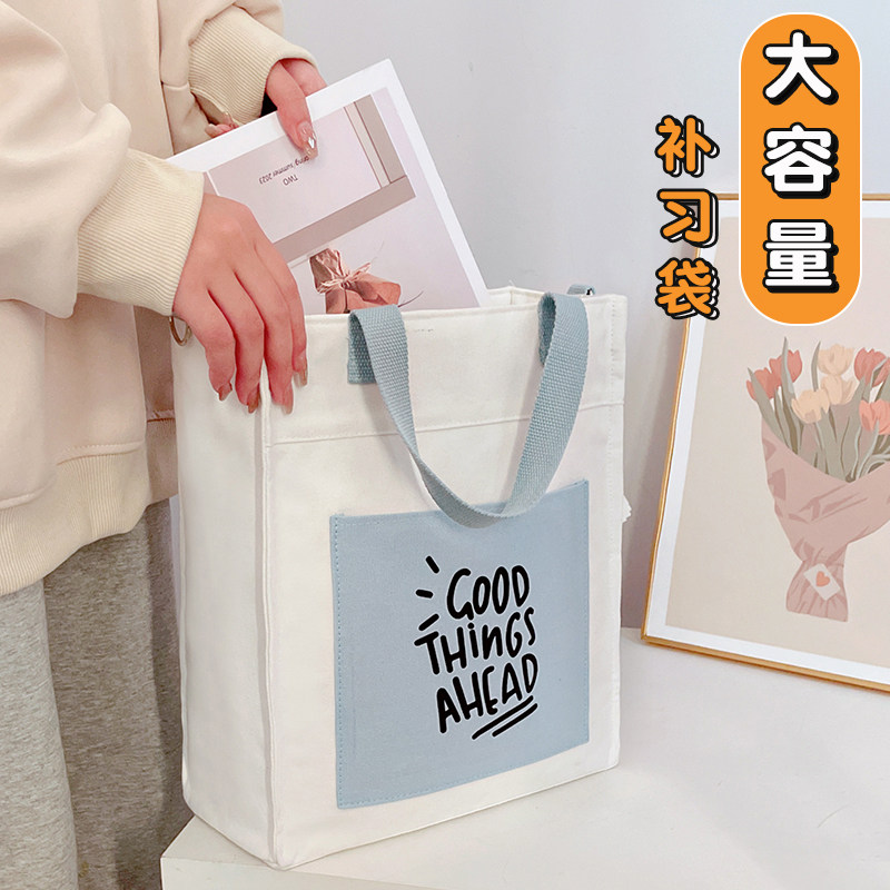 手提袋小学生拎书补课补习袋帆布包女2026新款大容量布袋包高颜值
