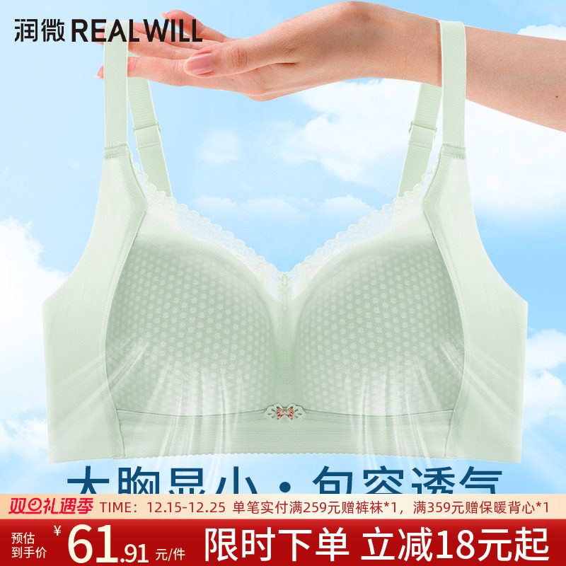 润微内衣女大胸显小防下垂收副乳聚拢文胸薄款舒适无痕大码胸罩
