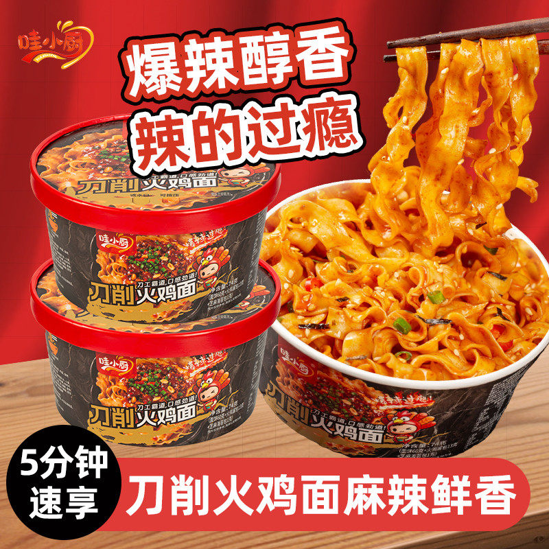 哇小厨火鸡面桶装刀削面泡面麻辣方便面速食拌面美食面条自热冲泡