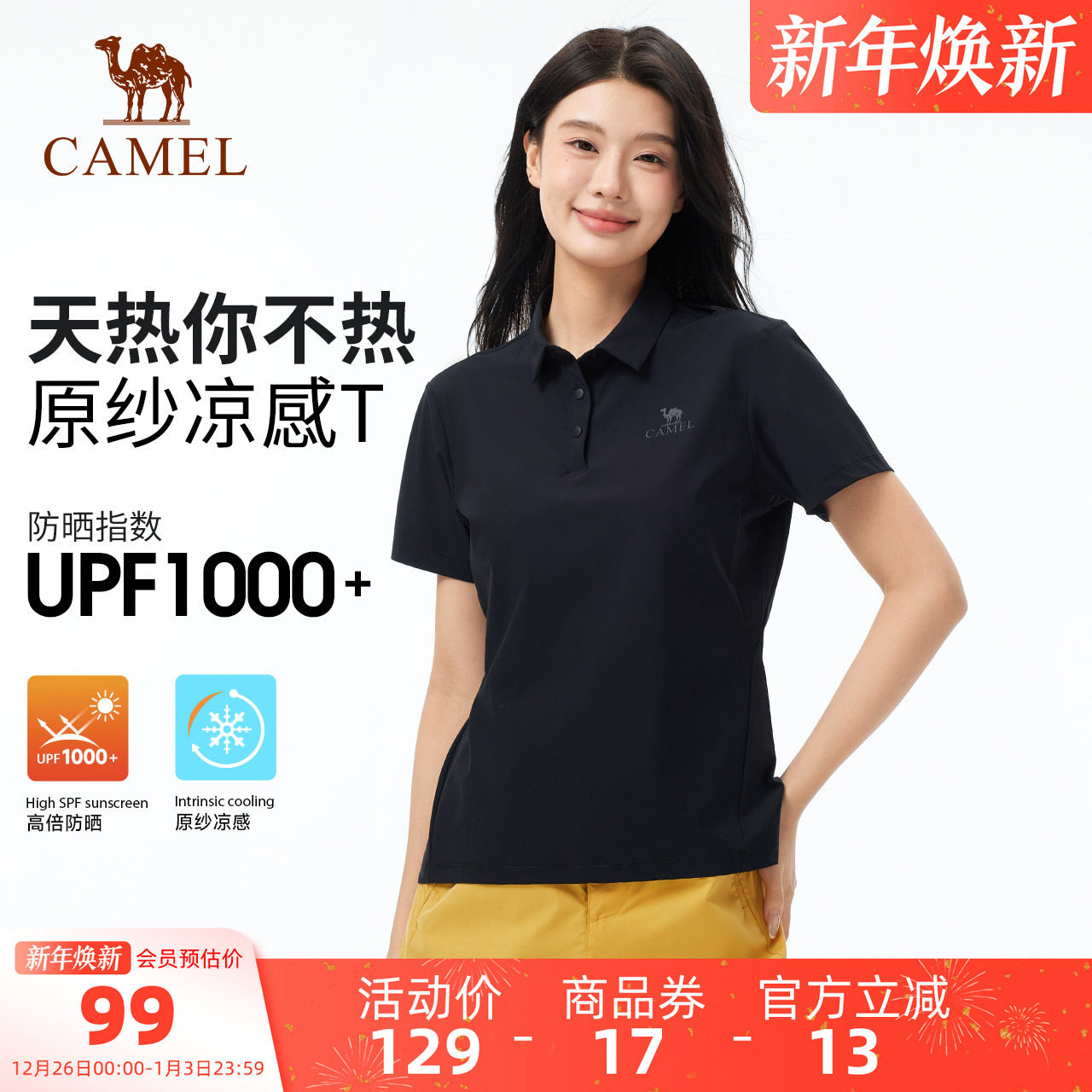 【原纱凉感】骆驼户外速干T恤女夏运动短袖抗皱防晒速干POLO衫男