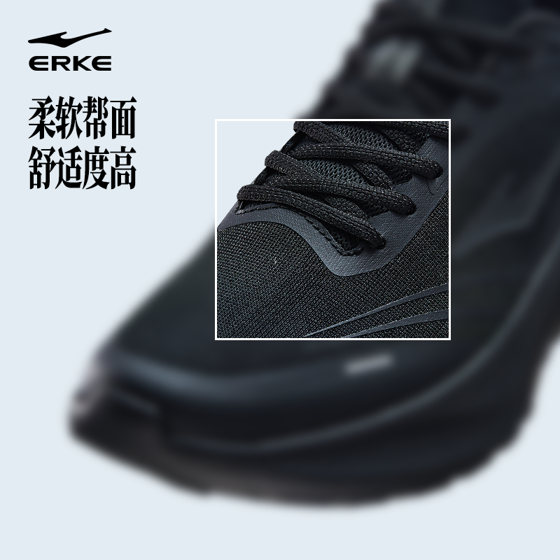 鸿星尔克男鞋冬季革面防水跑步鞋黑色公务鞋网面运动鞋软底跑鞋男
