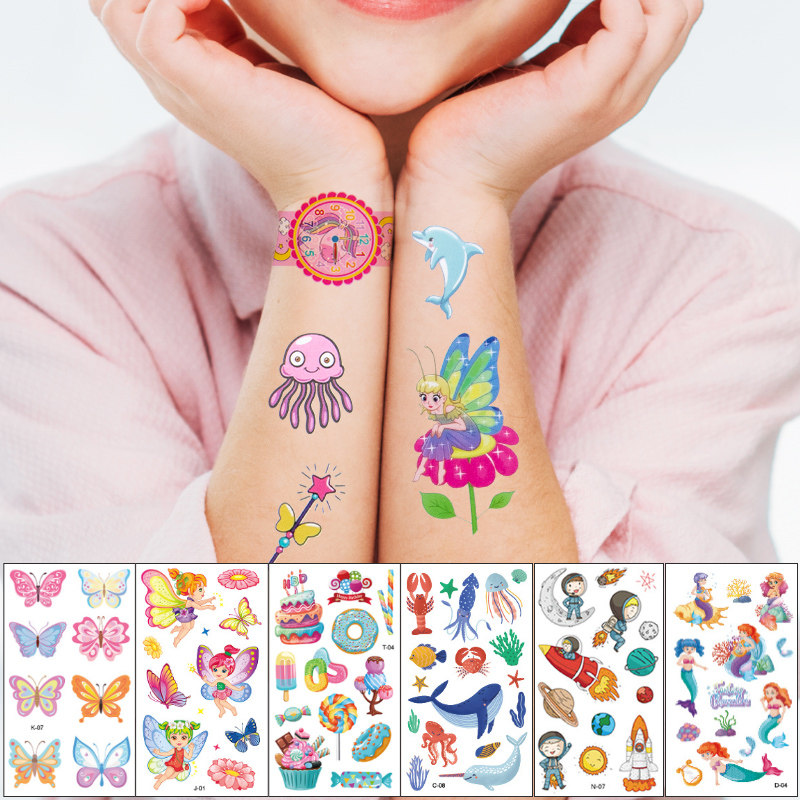学生可洗装饰拉布布纹身贴防水卡通女生labubu可爱闪粉水印手臂贴