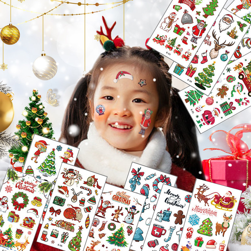 圣诞节装饰脸贴纹身贴彩色圣诞cos脸部妆容贴画防水高颜值儿童可爱卡通装扮雪人雪花麋鹿装饰图案贴纸手臂贴