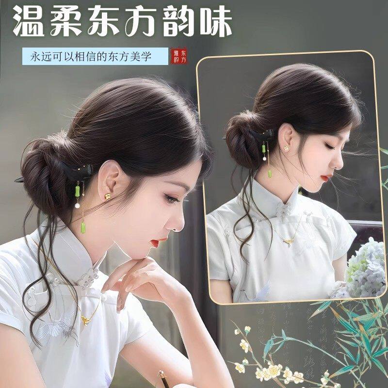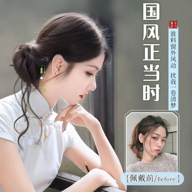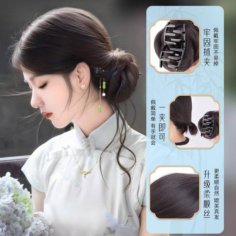 古风汉服假发髻盘发一体式发包古装明制唐风懒人造型垫发全套头饰