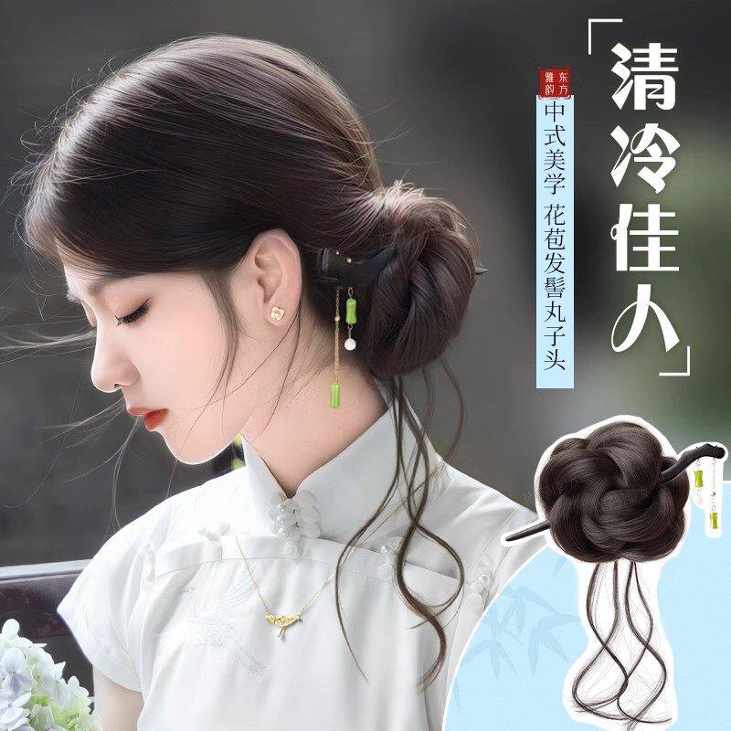 丸子头假发女古风抓夹发簪龙须花苞头自然蓬松仿真发国风发包发髻