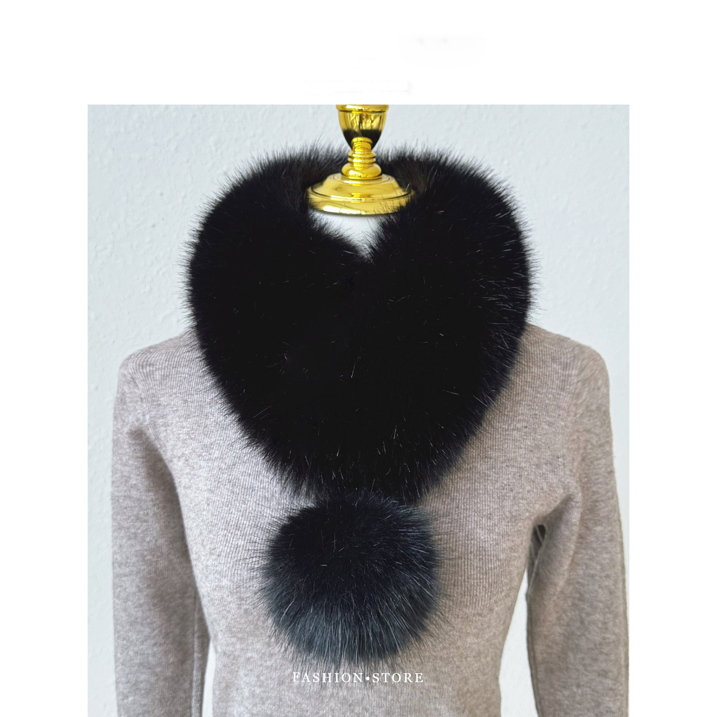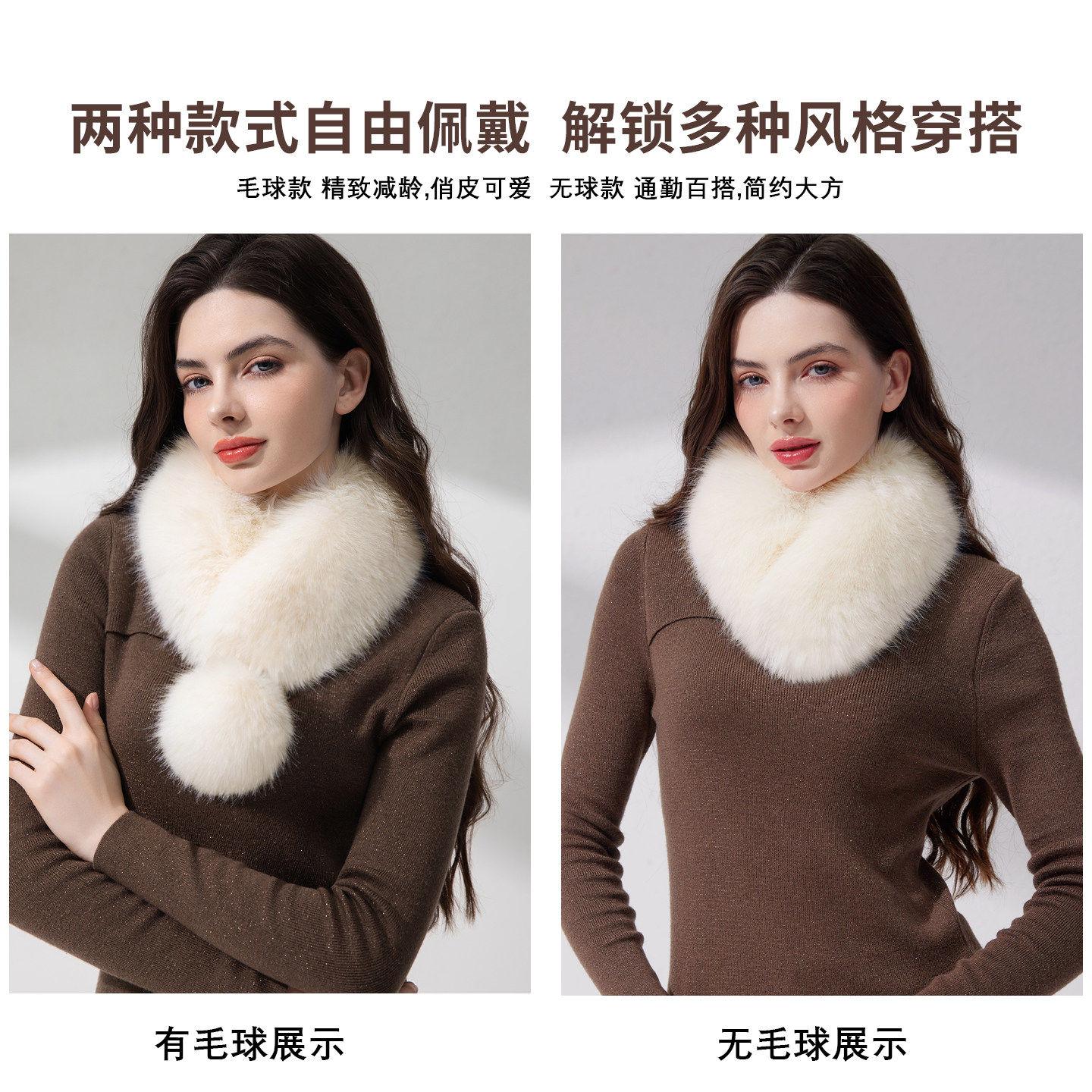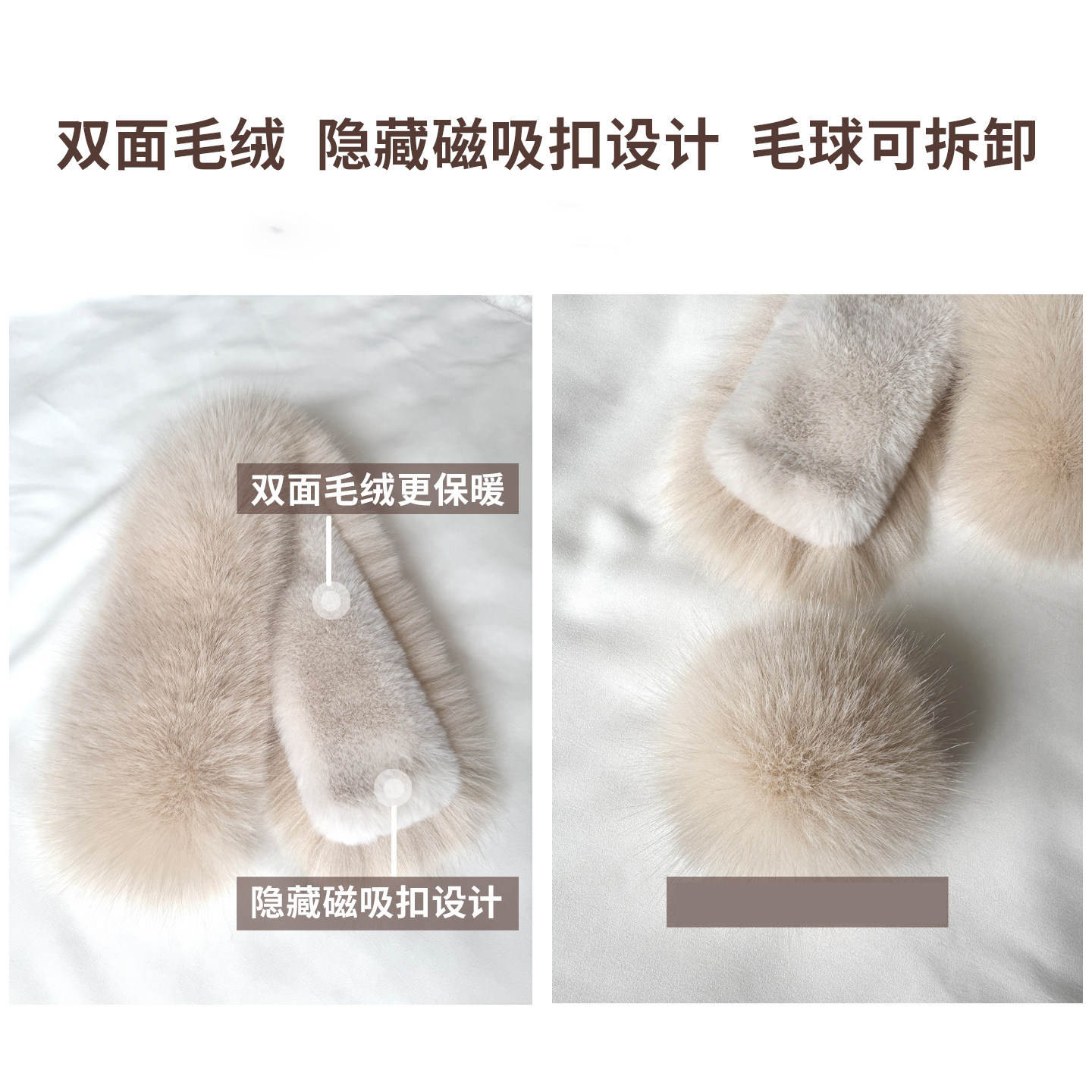 狐狸毛围巾女秋冬毛球仿皮草双面毛领围脖磁吸扣兔毛可拆卸奶茶色