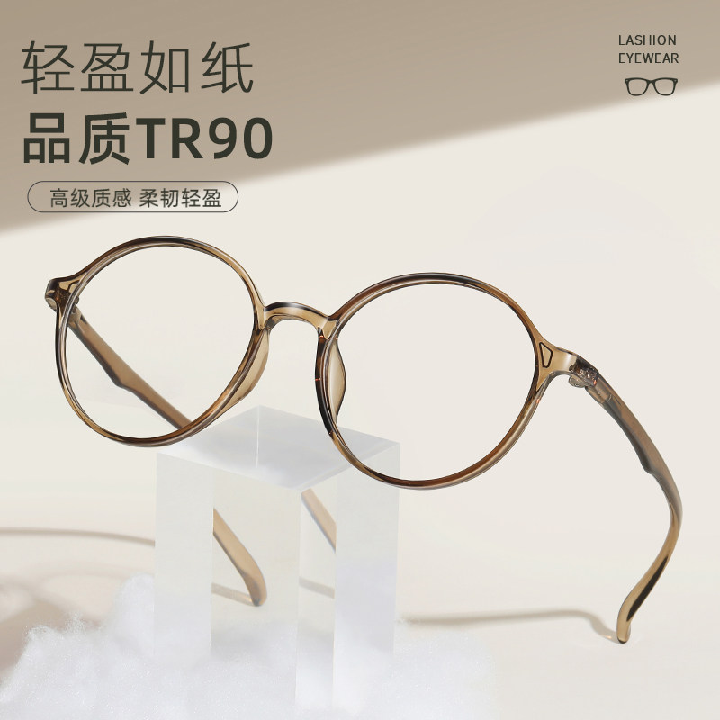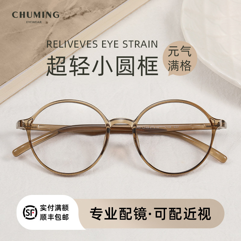 超轻tr90韩系乌龙茶减龄圆框眼镜近视女度数可配素颜显白眼睛镜架