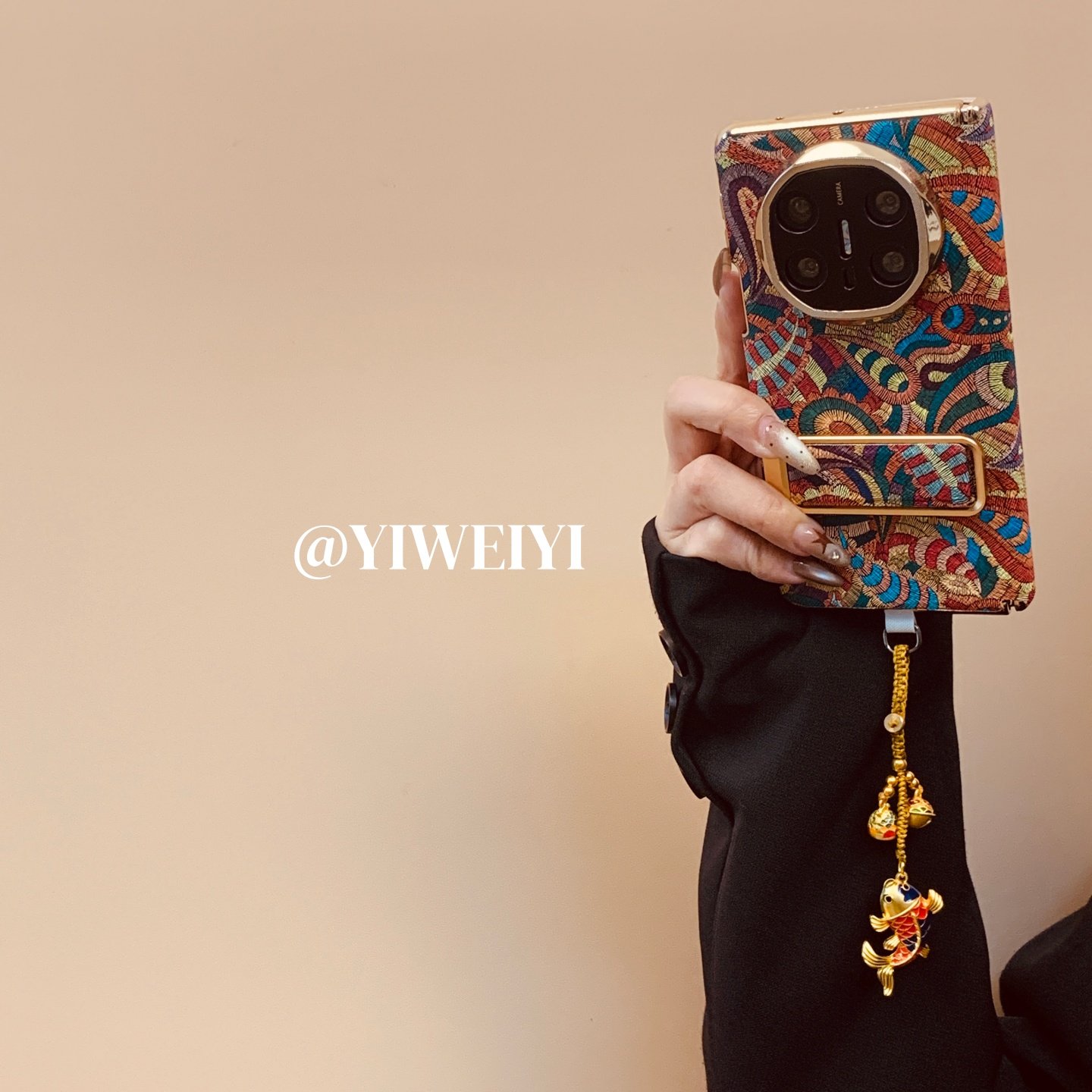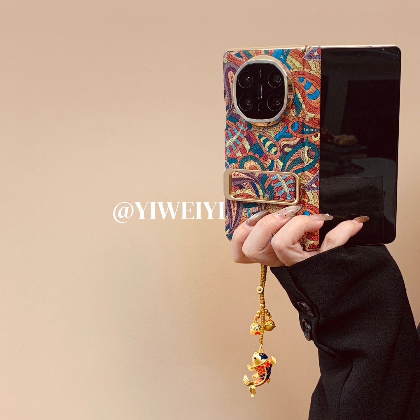 依维意 适用于华为matex7手机壳matex3新中式国风折叠屏文艺matex6典藏版双中轴腰果花matex5创意金鱼挂件