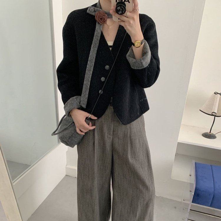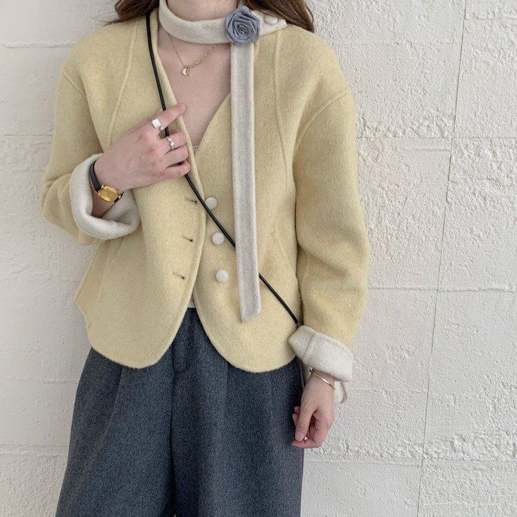 气质双面羊毛大衣女短款2025新款单排扣双面呢圆领小香风毛呢外套