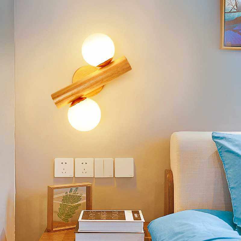 日式侘寂风原木玻璃卧室床头壁灯现代简约书房过道玄关墙壁分子灯
