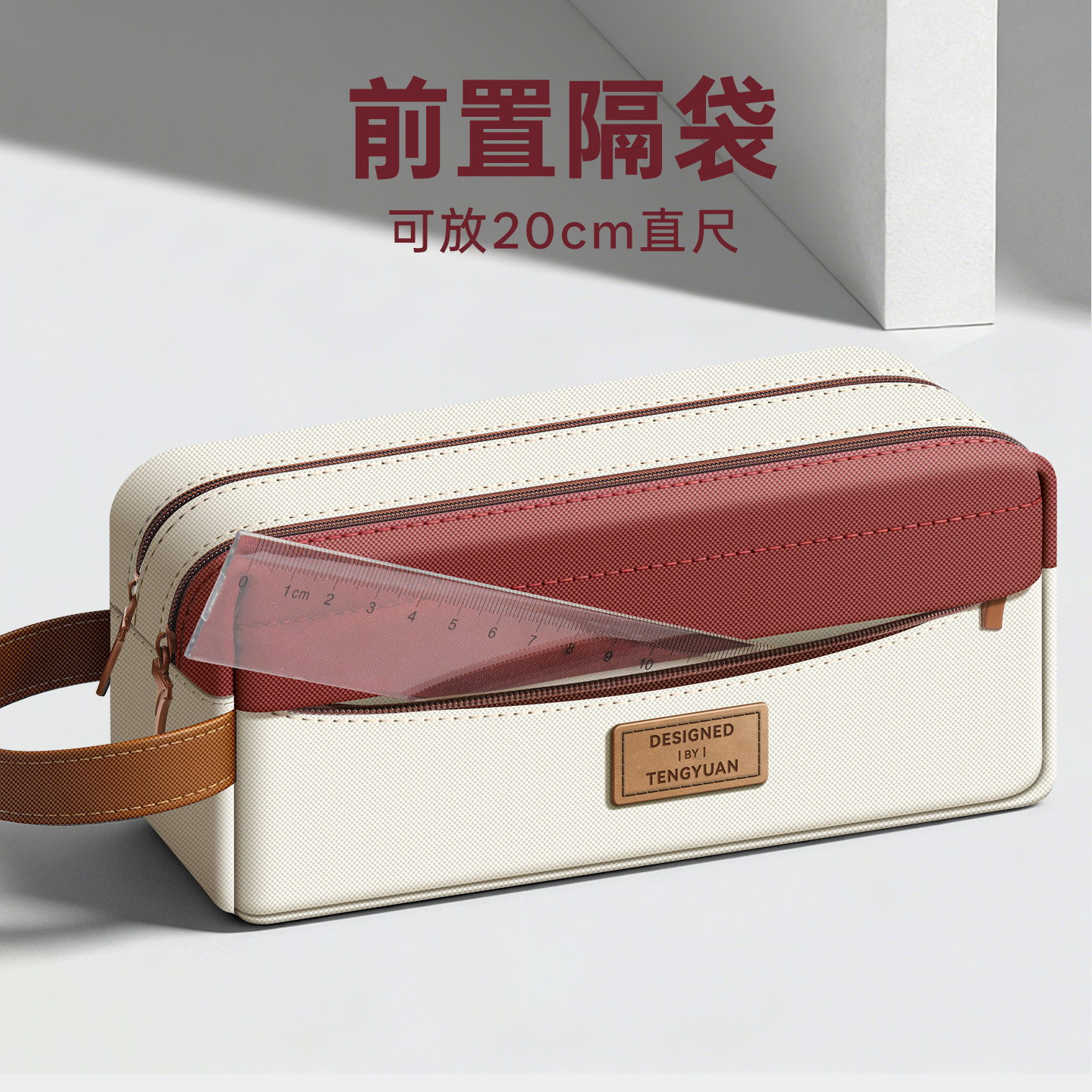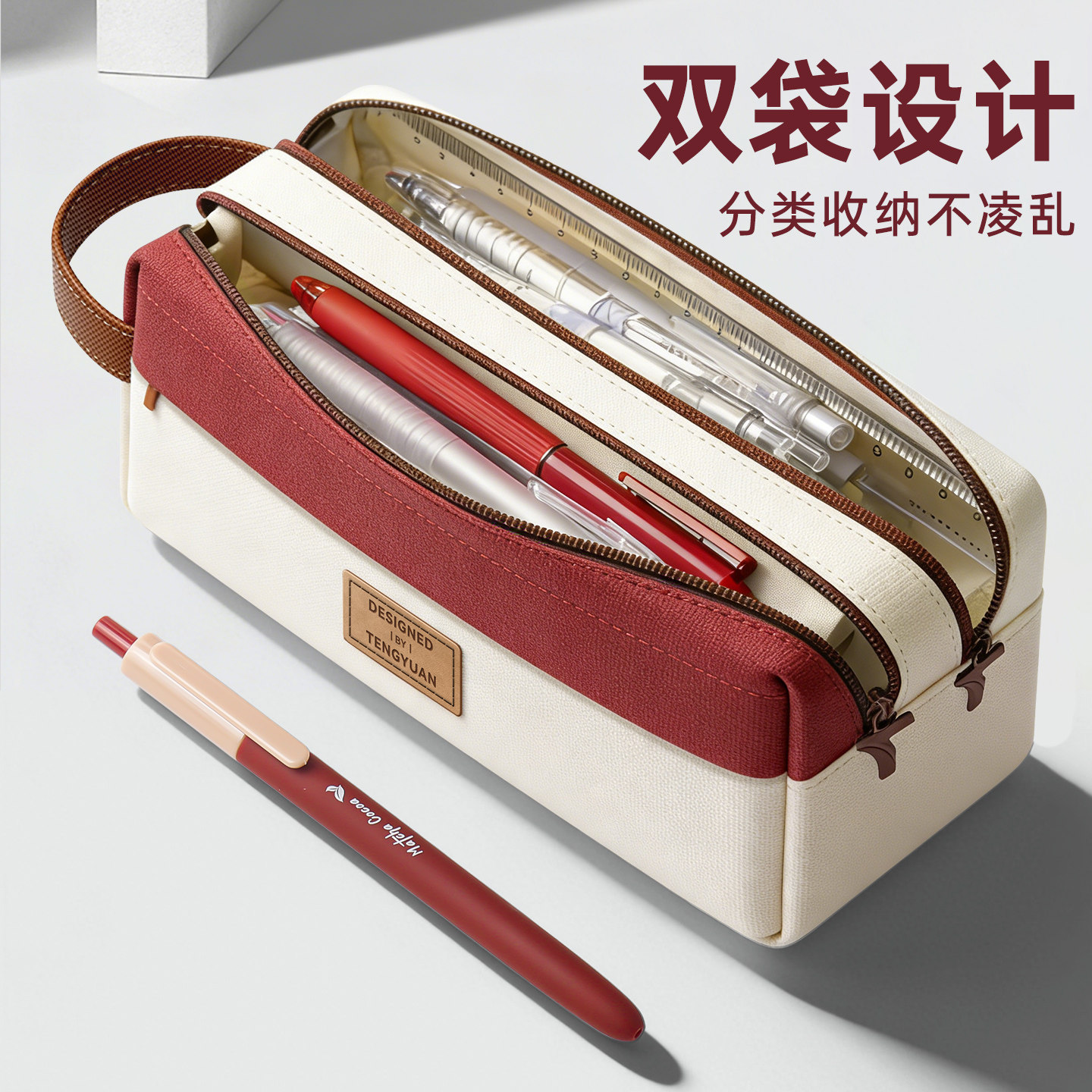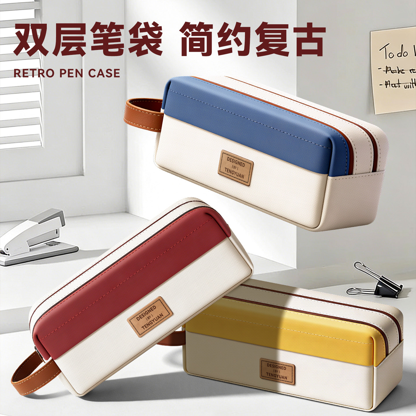 笔袋高颜值复古撞色手提铅笔袋女孩版新款小众不撞款ins风初中生超大容量铅笔盒收纳袋学生多功能简约文具袋