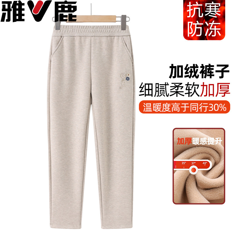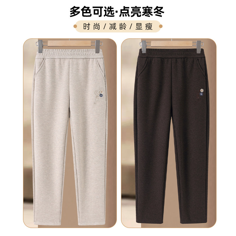 中老年妈妈裤子秋冬季加绒加女裤厚直筒老人奶奶春秋长裤小个子