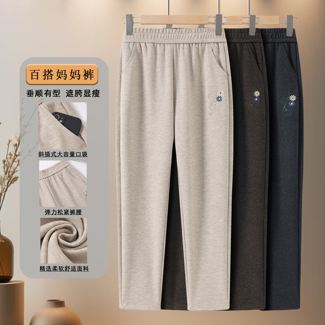 妈妈裤子春秋款松紧高腰弹力中老年女裤宽松大码直筒奶奶加绒长裤