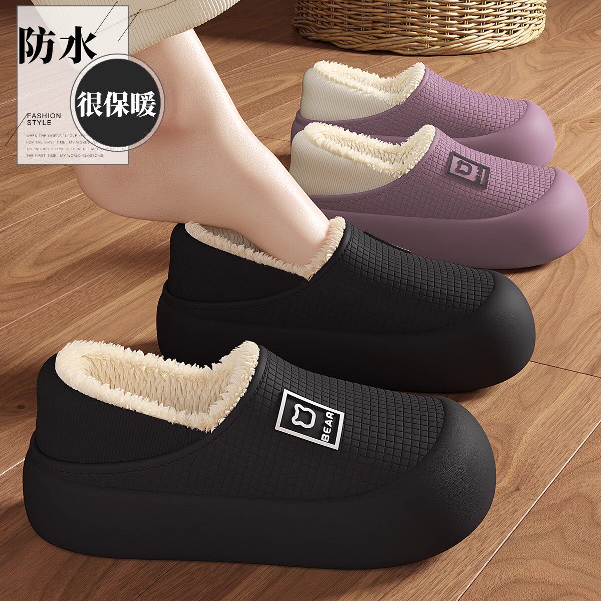 2026新款翻半包跟棉拖加绒保暖情侣外穿毛毛绒厚底防滑居家棉拖鞋