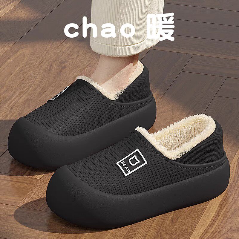 红豆踩屎感棉拖鞋女士秋冬季室内家居2025新款毛绒保暖情侣棉拖男