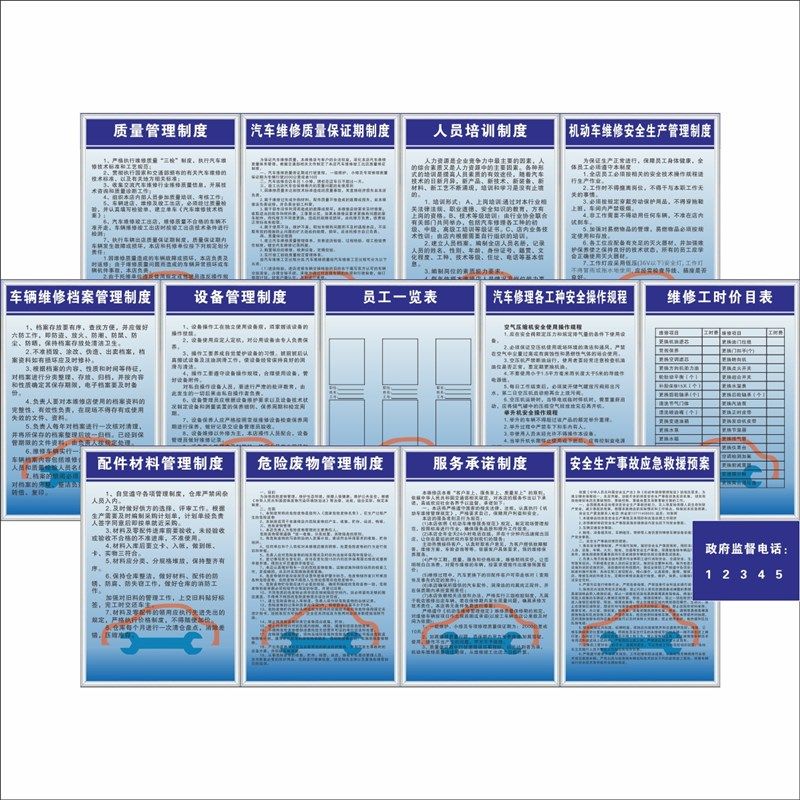 汽车维修理厂二三k类管理规章制度牌质量人员培训安全生产应急救