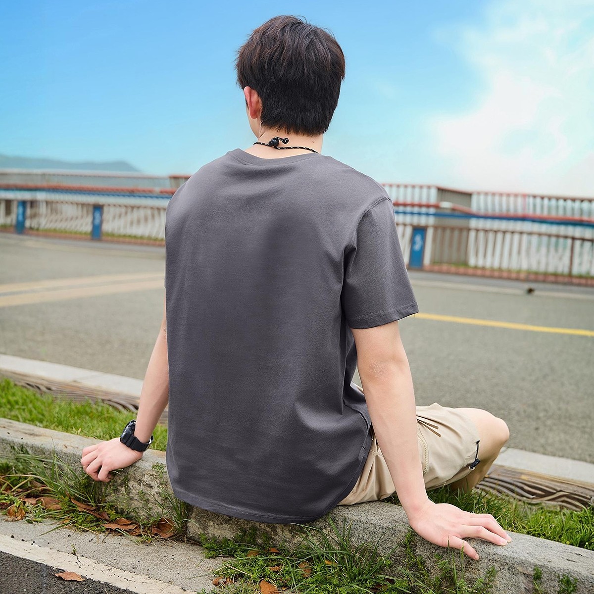 新疆长绒纯棉短袖t恤男士纯色宽松全棉半袖圆领汗衫简约百搭体恤