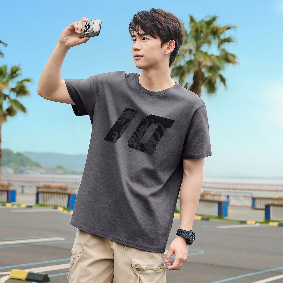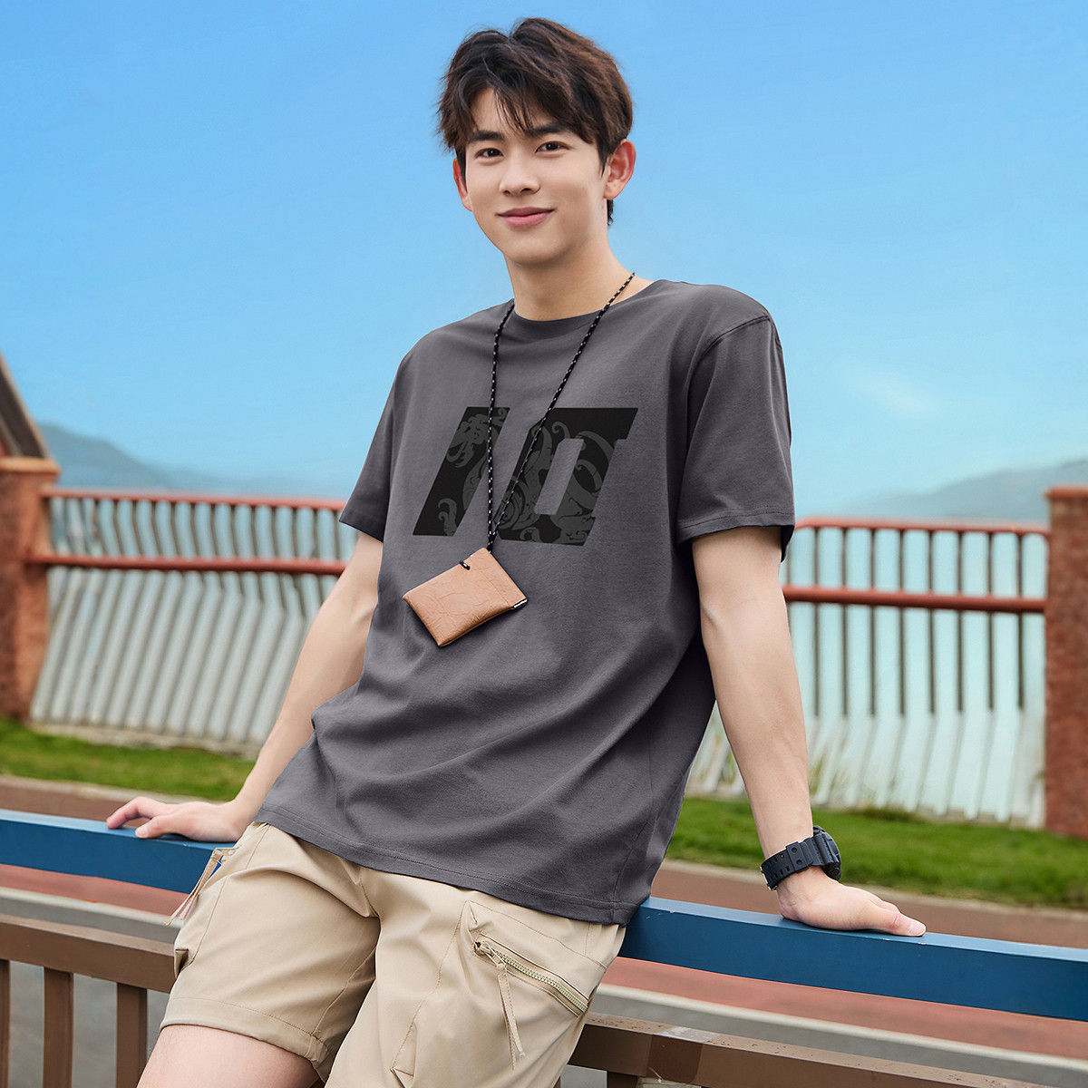 唐狮夏季新款男短袖T恤图案印花宽松圆领上衣潮流内搭t恤打底