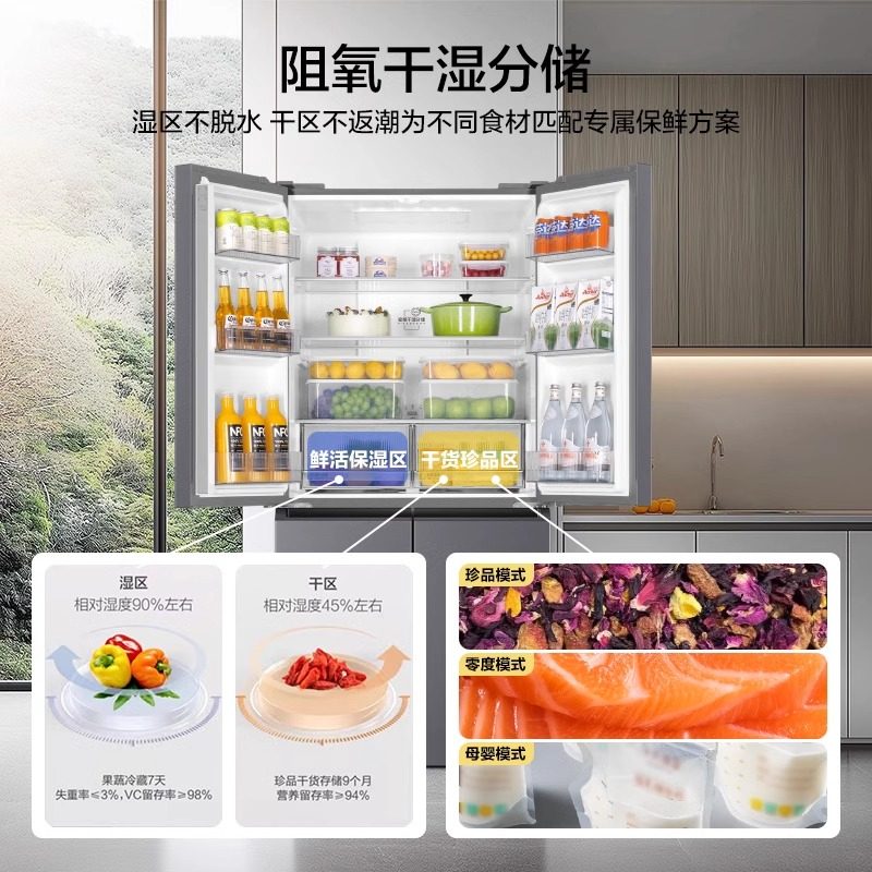 政府补贴美的M60机皇550零嵌入式双系统制冰冰箱家用法式双开四门