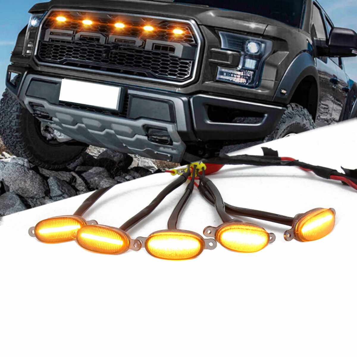 通用中网小黄灯一拖五LED高亮日行灯格栅灯 汽车 越野车 大卡车