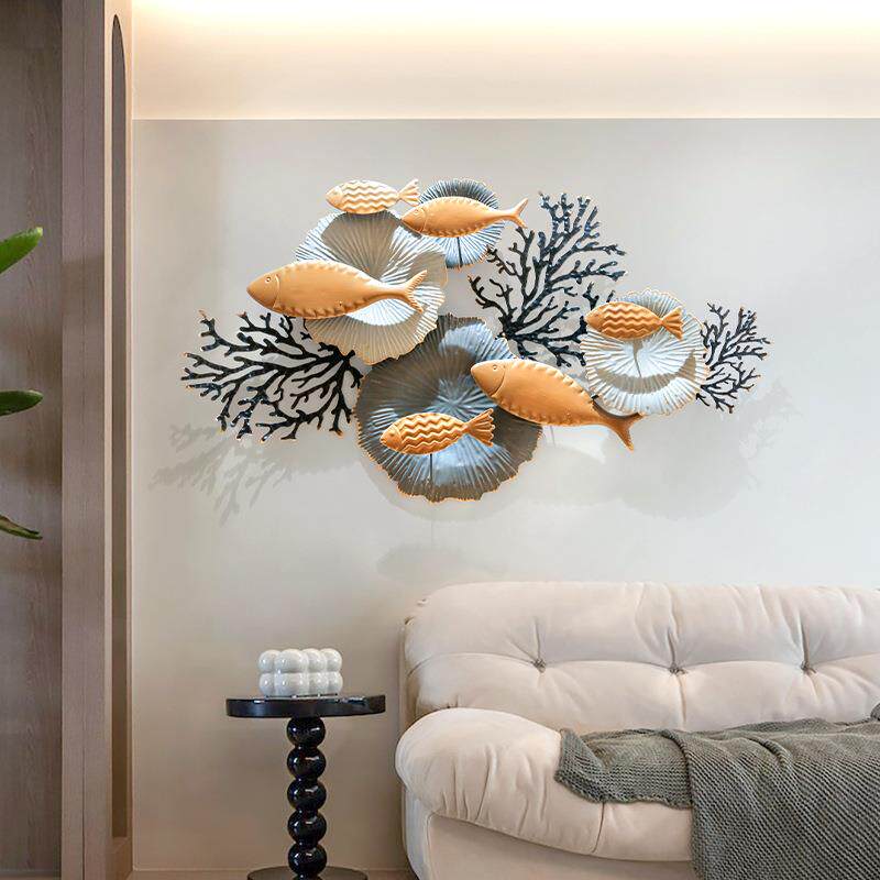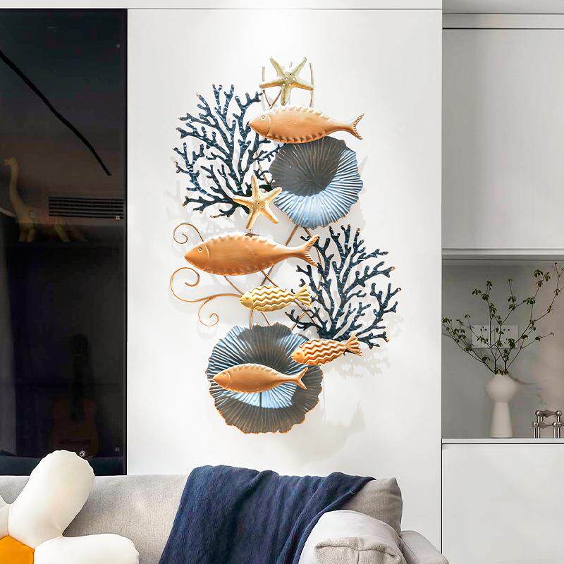 海洋风创意墙面装饰铁艺鱼背景壁挂饰室内儿童房卧室挂件玄关墙饰