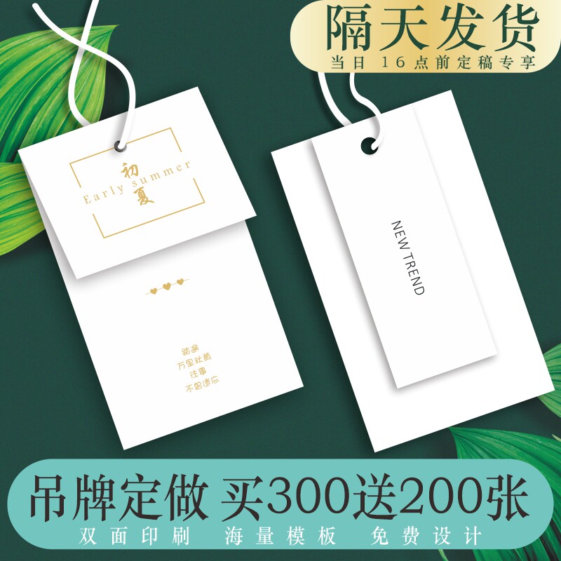 吊牌定做高级女装挂牌服装店衣服小标签商标定制童装合格证logo有档次现货通用吊牌订做吊卡印刷设计