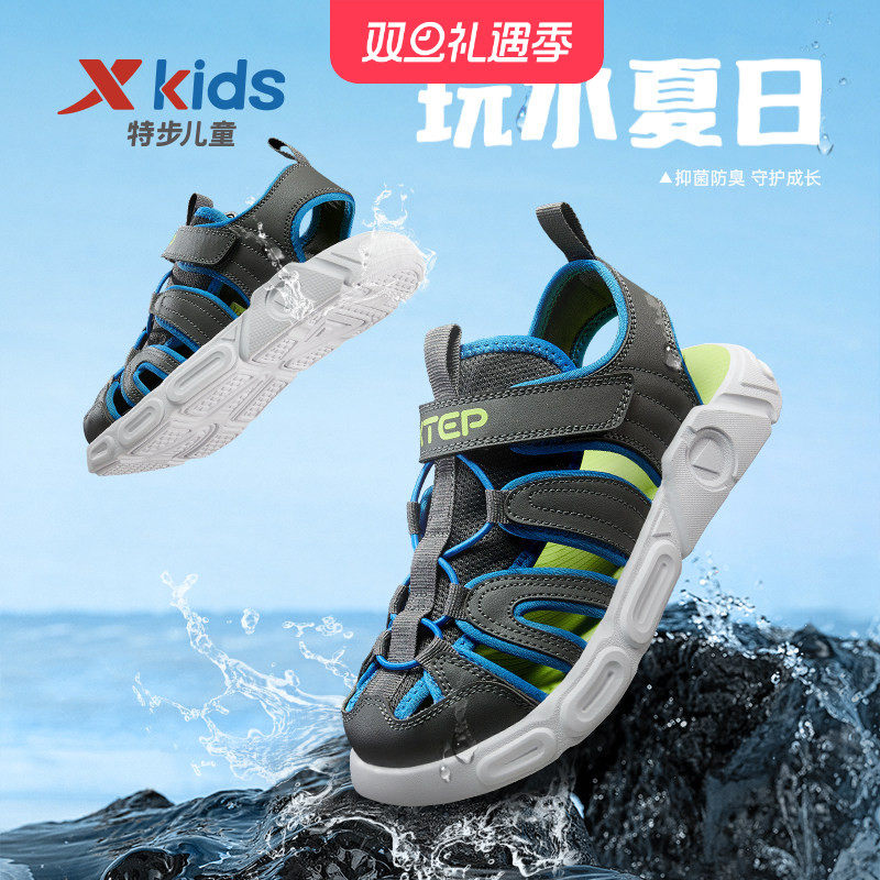 特步童鞋儿童运动凉鞋男童软底户外溯溪魔术贴女孩夏季沙滩鞋透气