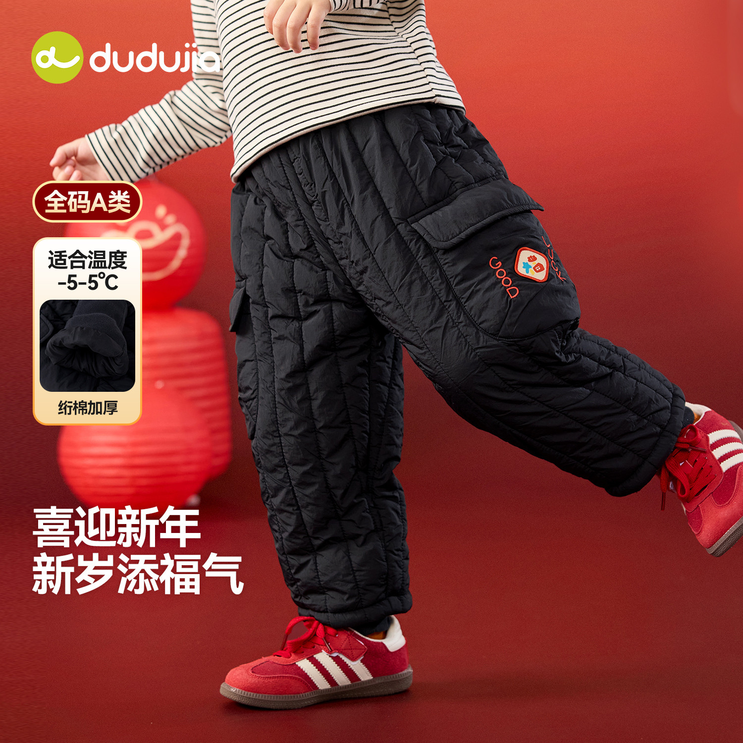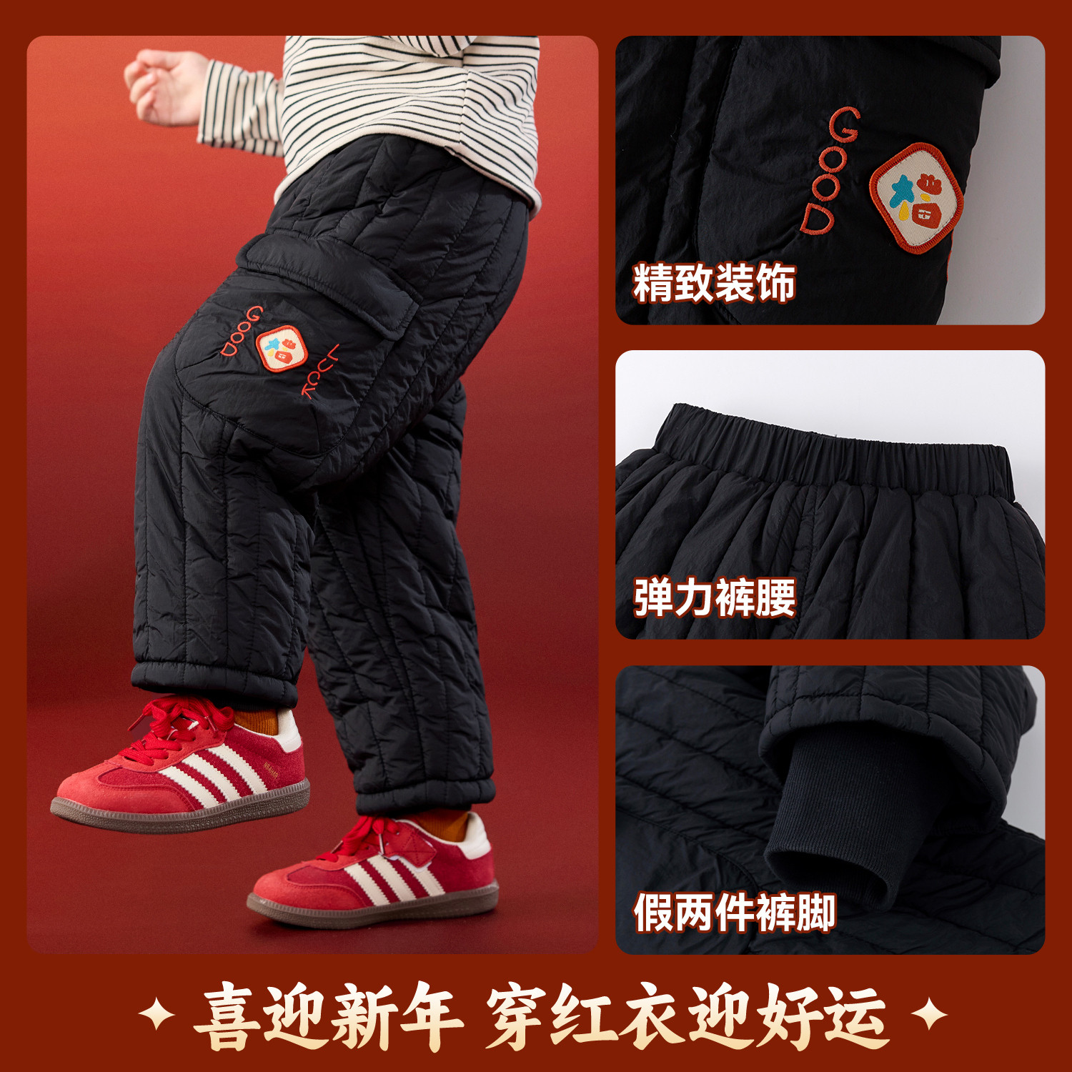 嘟嘟家儿童裤子宝宝拜年服长裤男童棉裤加绒加厚冬季唐装女童衣服