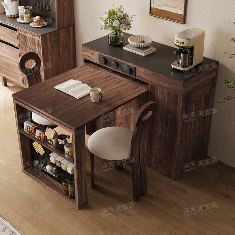 导台柜餐桌一体家用小户型可伸缩厨房吧台迷你折叠窄倒带插座茶台