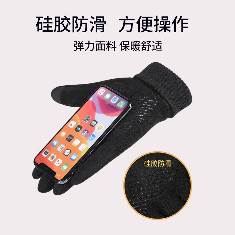可触屏棉手套男士冬季保暖加绒加厚毛线针织骑行男女同款防寒手套