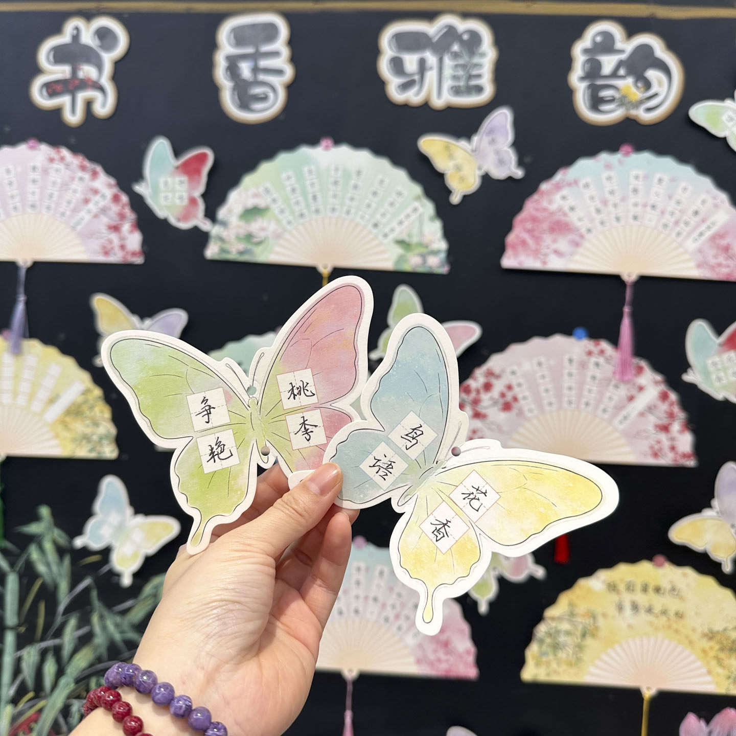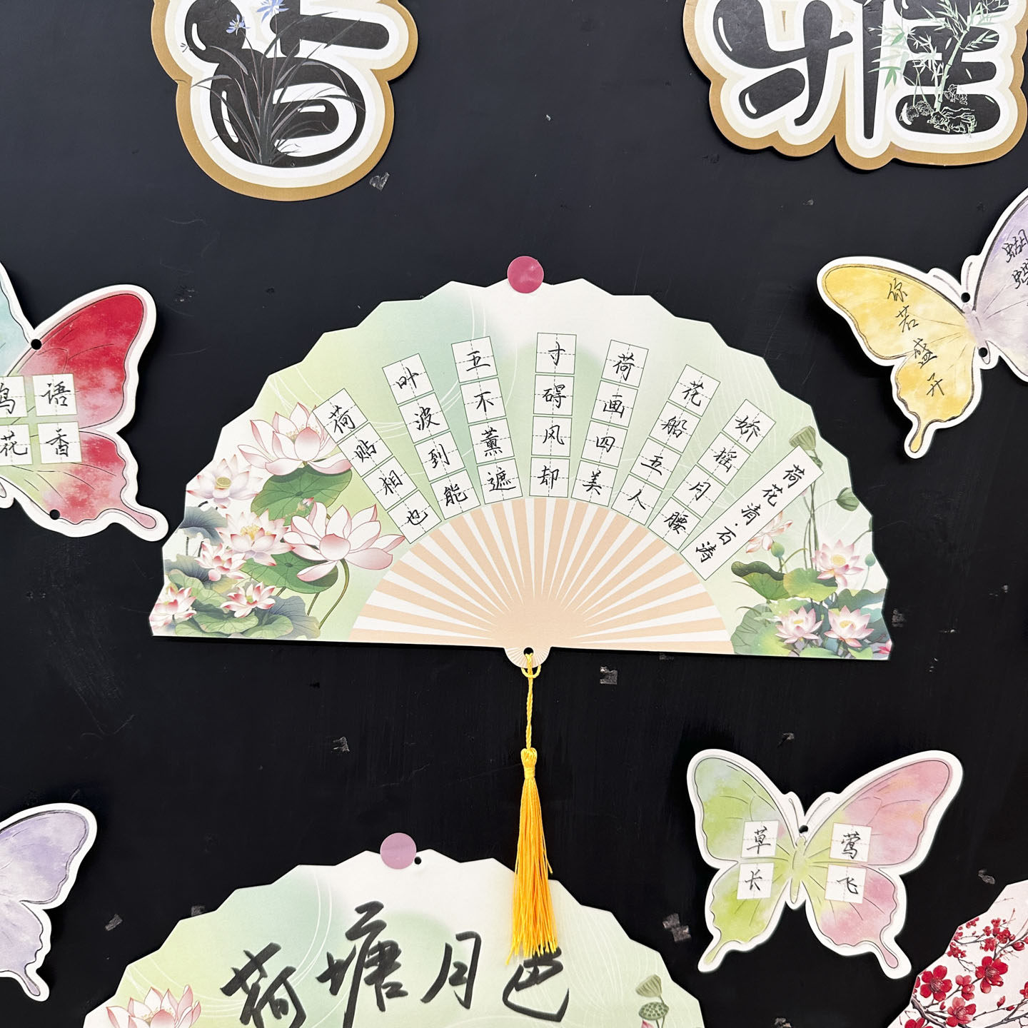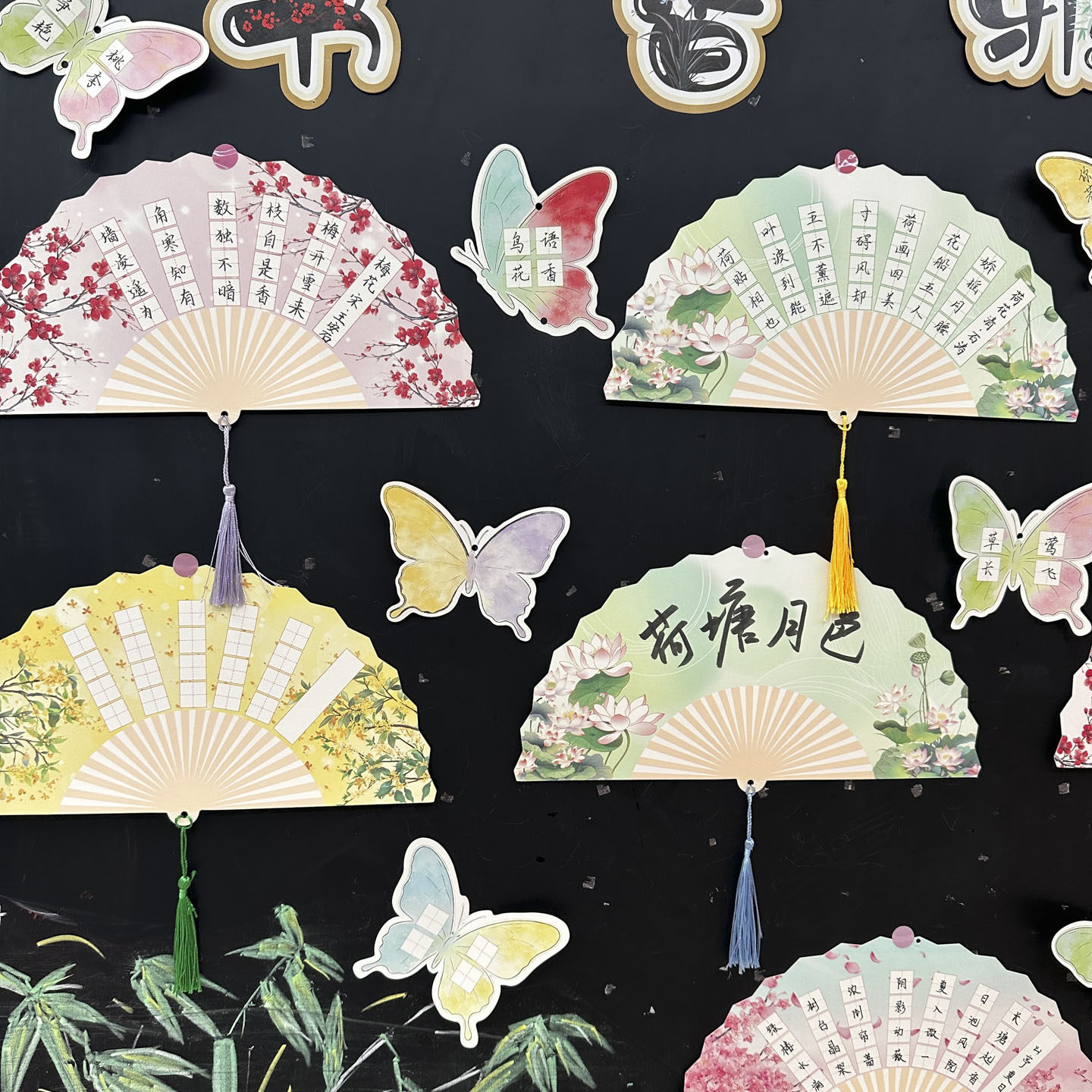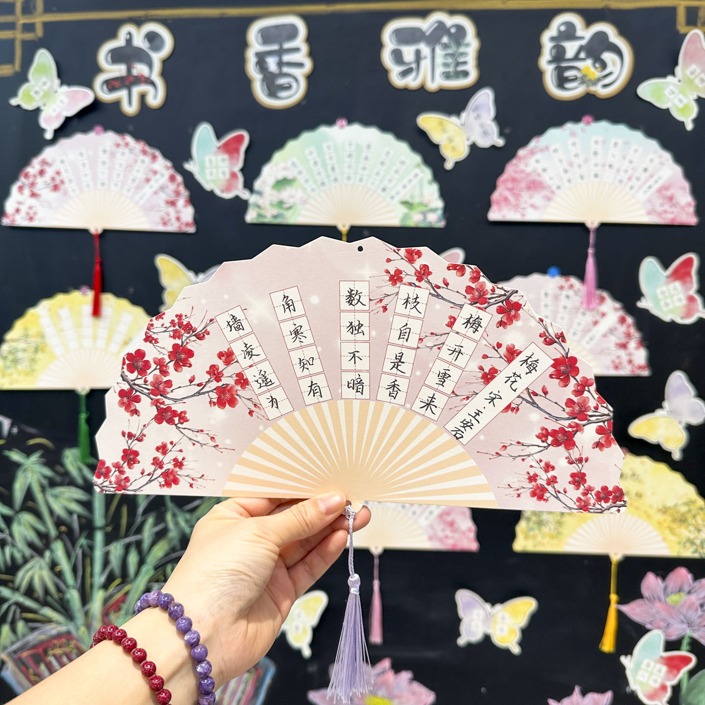 创意古风仿真折扇子硬笔书法纸书香班级教室黑板布置异形扇面加厚练字比赛专用书写古诗纸环创布置