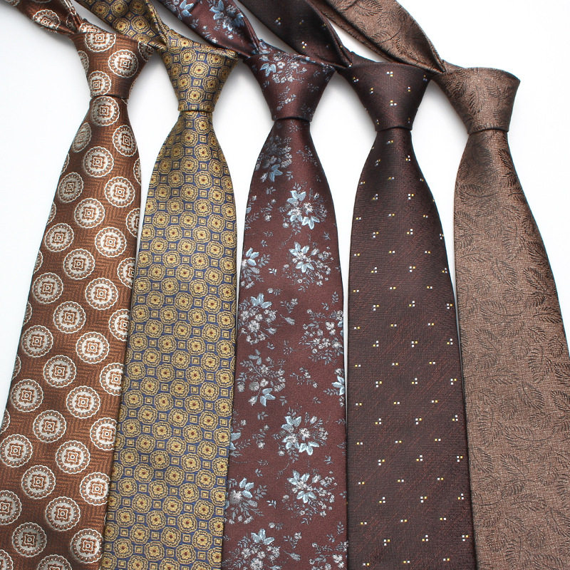 厂家现货批发2022新款咖色领带男士休闲时尚涤丝手打领带多色可选