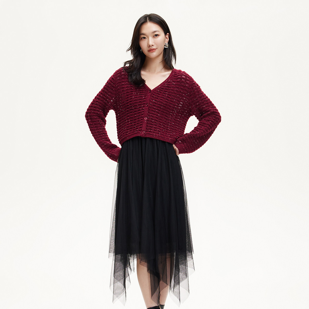针织开衫 方便穿脱;亮片点缀 个性时尚
