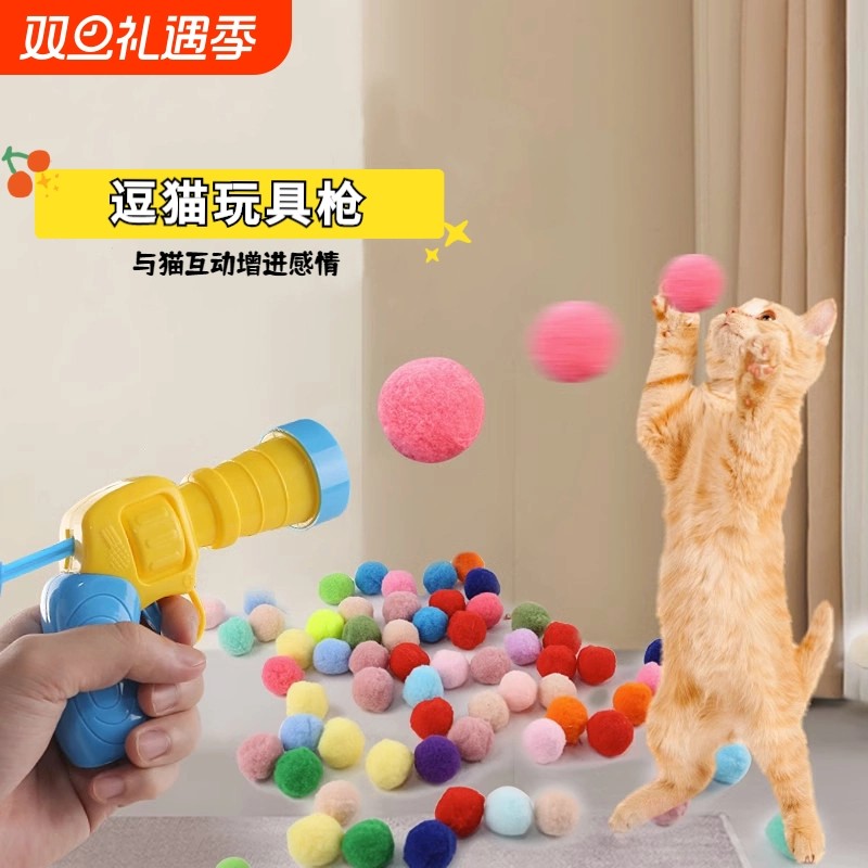 猫咪玩具毛球绒球发射枪自嗨解闷弹力无声静音球耐咬逗猫棒宠物球