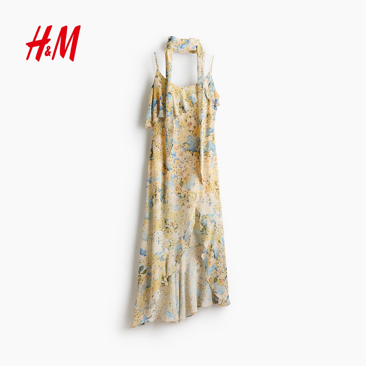 HM2026春季新款女装配围巾荷叶边雪纺连衣裙1331175