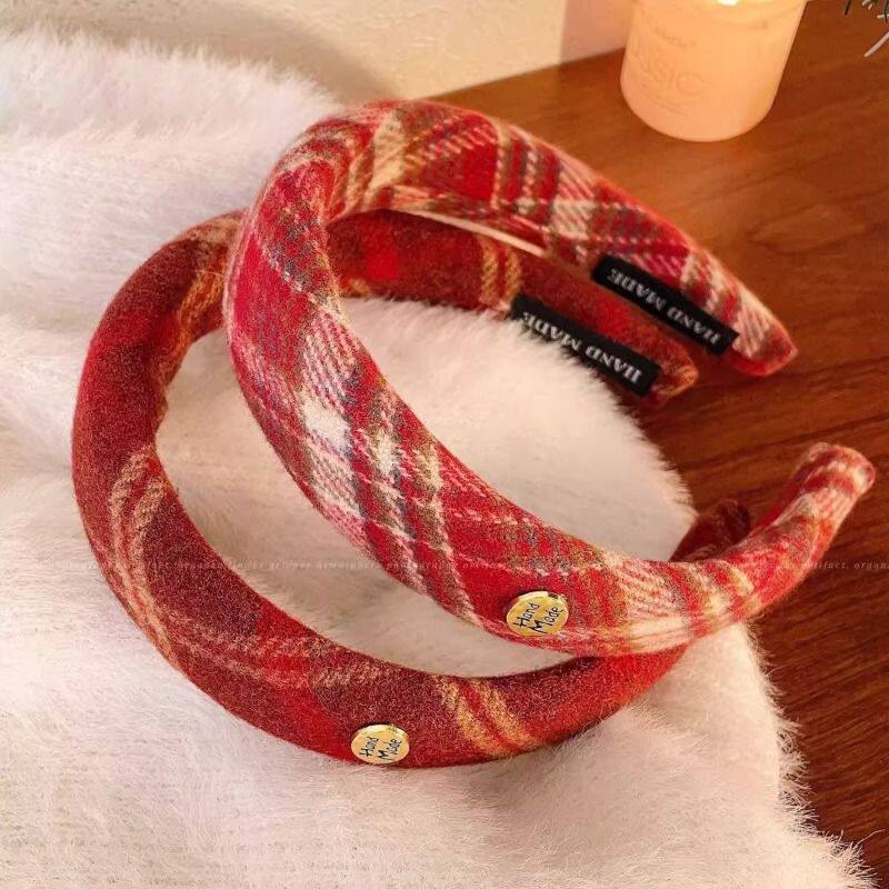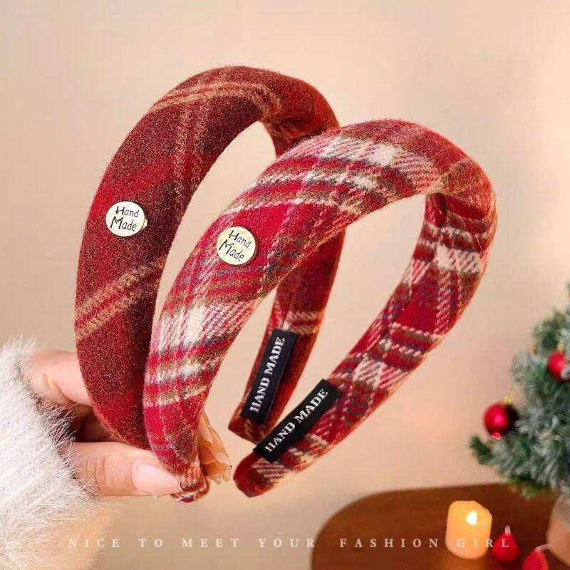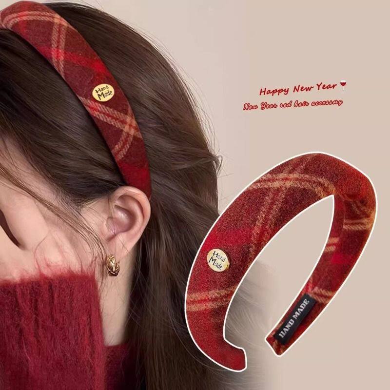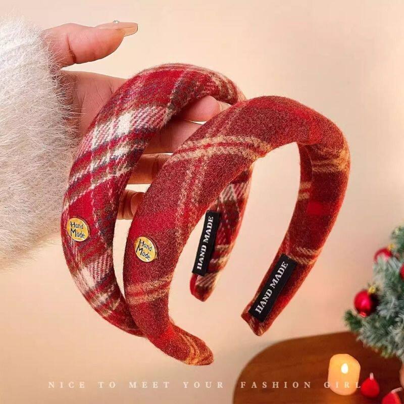 圣诞发箍秋冬毛绒高颅顶格子女2025气质高级感洗脸头箍新年款来啦