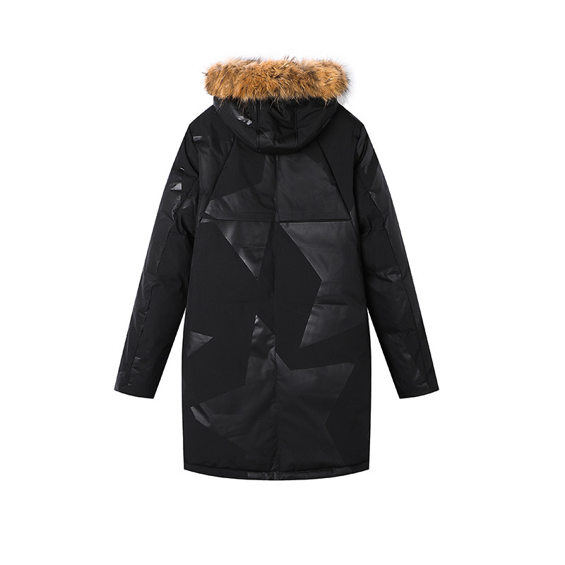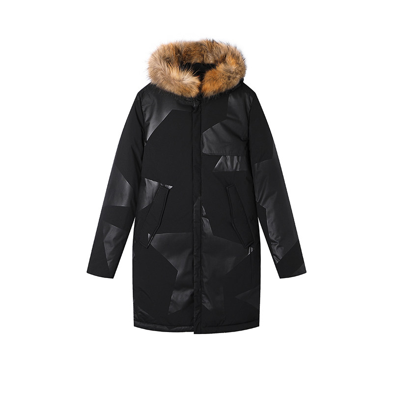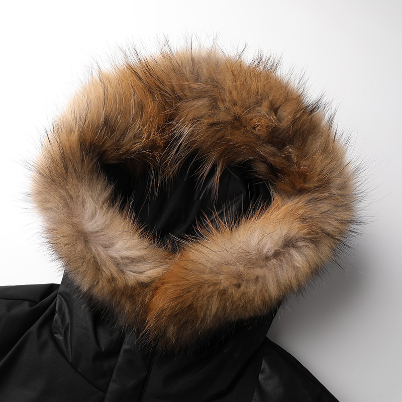 外贸男装工厂冬季舒适保暖连帽毛领长款羽绒服蓬松貉子毛领外套
