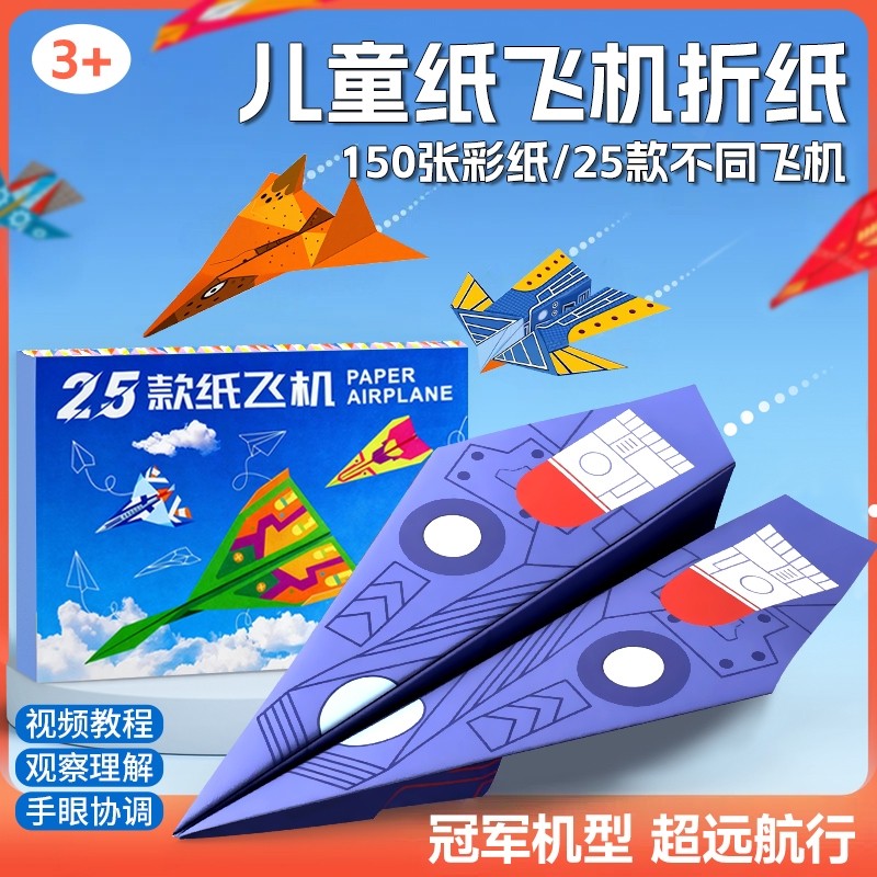 儿童益智折叠纸飞机专用折纸手工彩纸飞行家大全幼儿园教程书立体