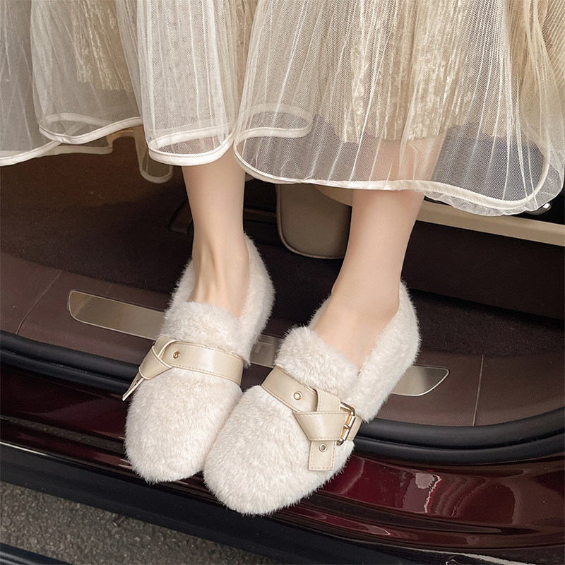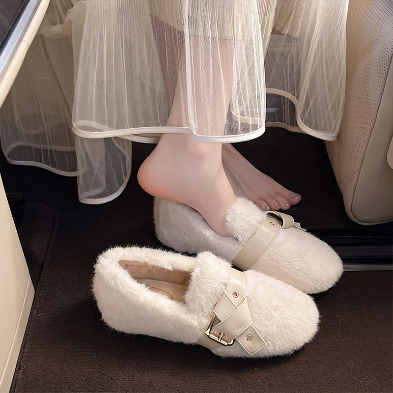 内增高白色毛毛鞋女外穿2025新款冬季高级感毛绒单鞋保暖豆豆棉鞋