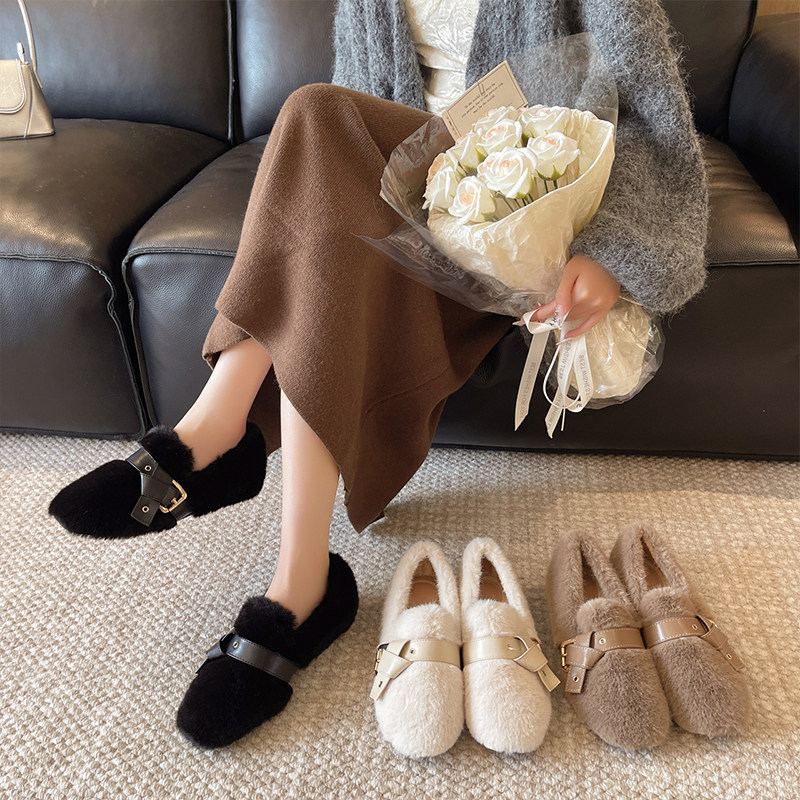 斯凯奇奶贝鞋|秋冬季女鞋加绒乐福鞋毛毛鞋保暖豆豆鞋时尚休闲鞋