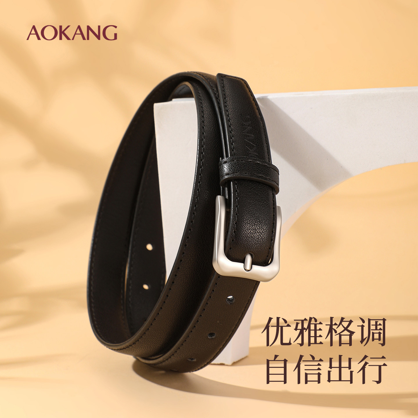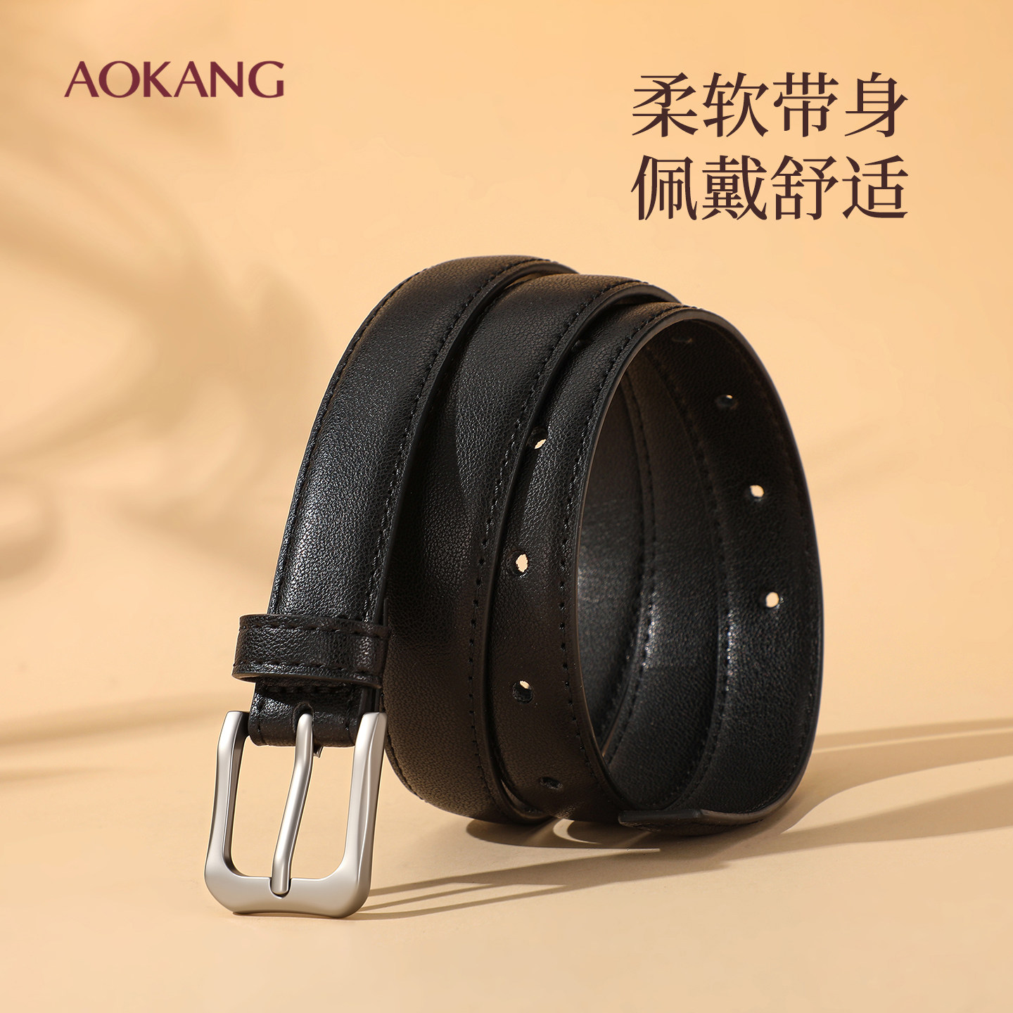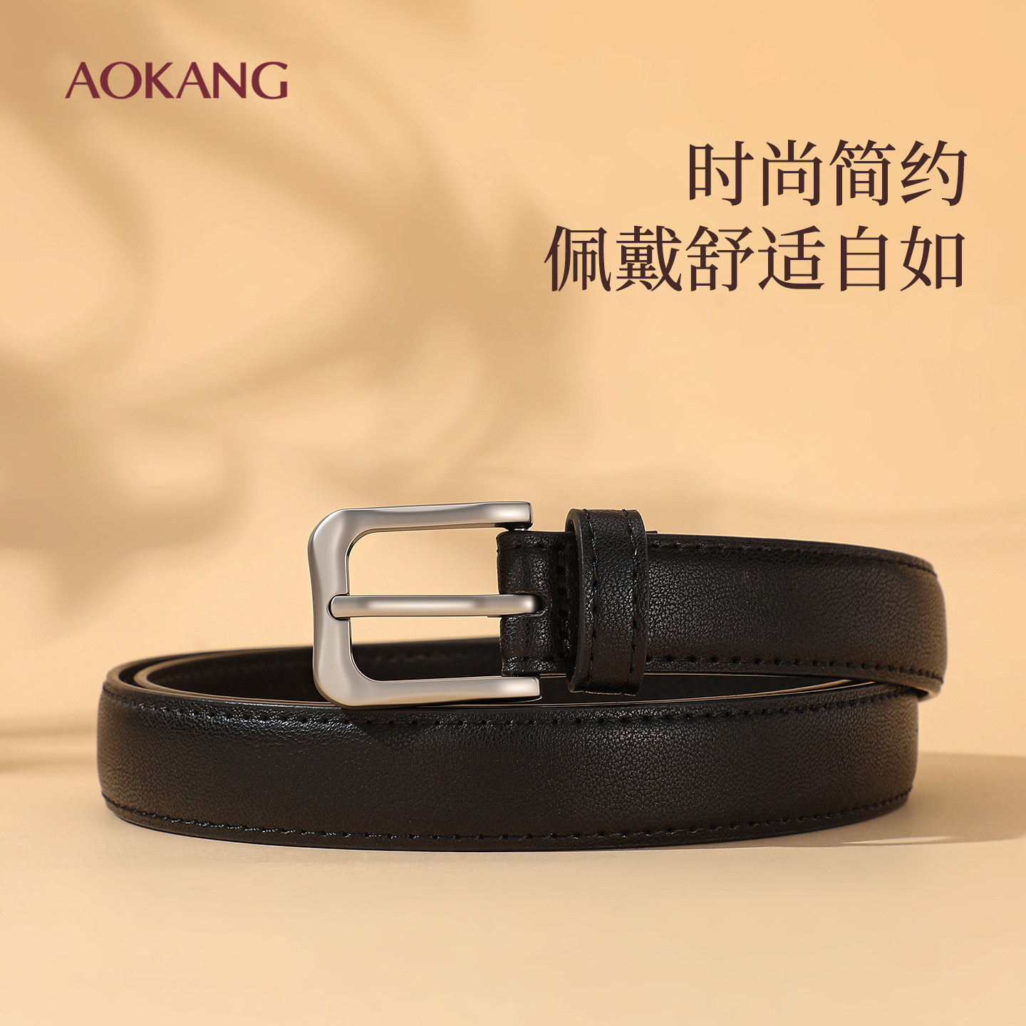 奥康皮带女士2025新款配牛仔裤腰带真皮女腰带时尚百搭黑色装饰J