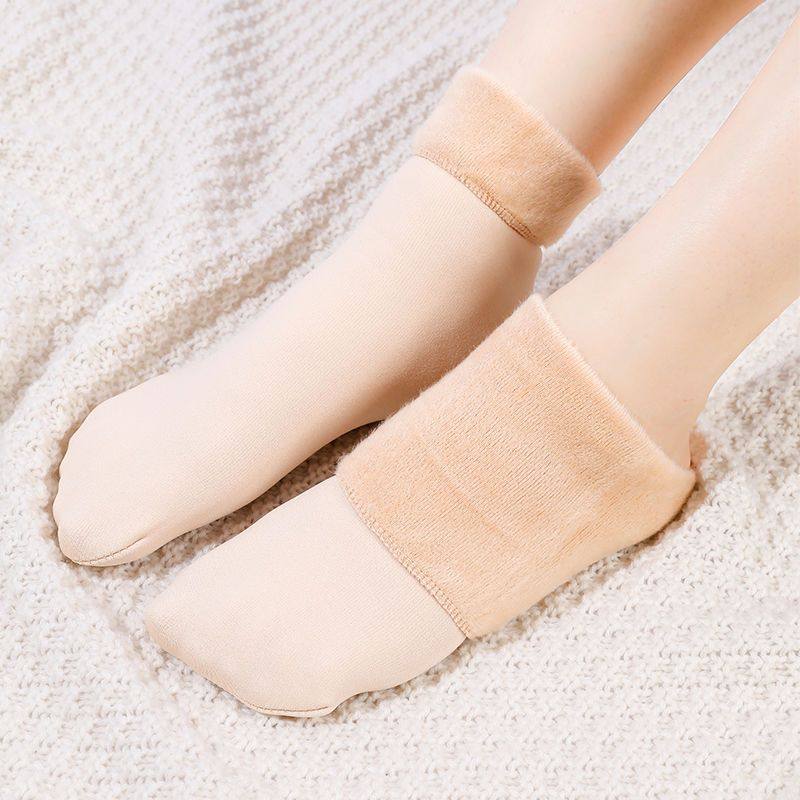 珊瑚绒袜子女冬季加绒加厚中筒袜子居家睡眠地板袜产后保暖月子袜