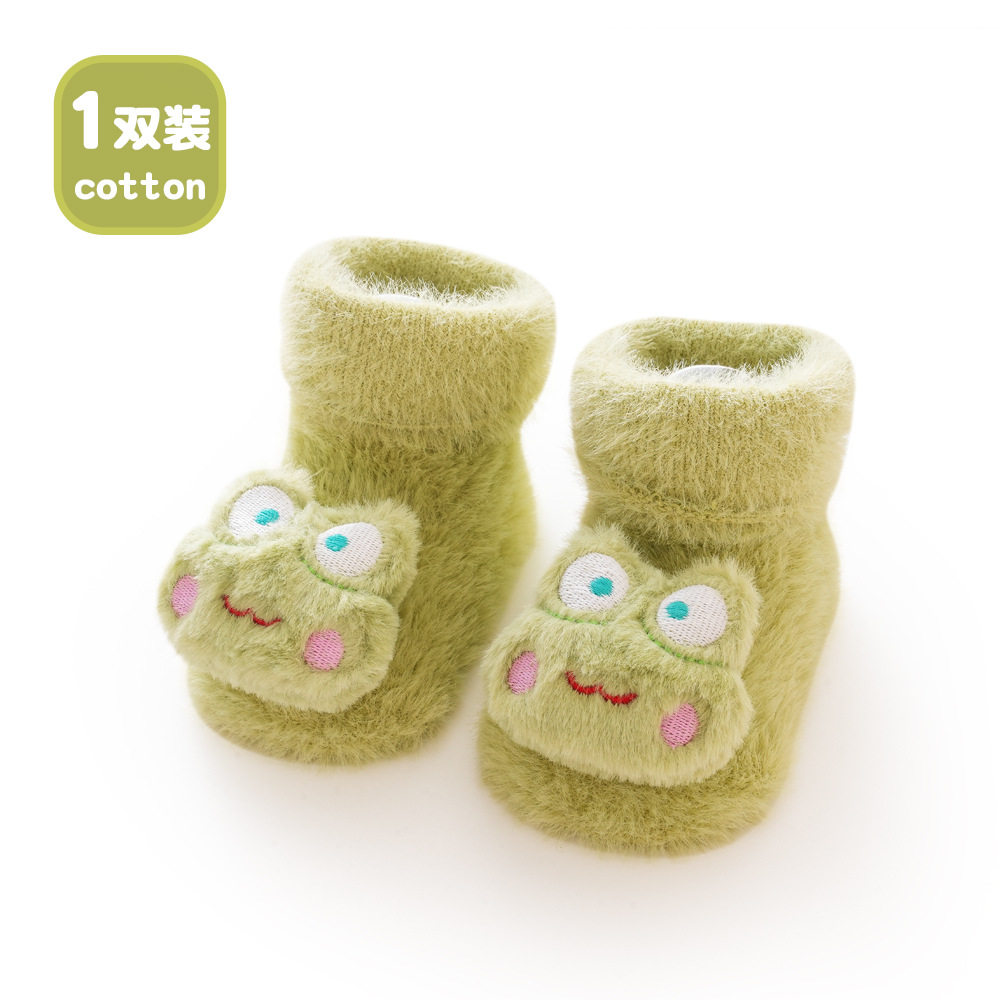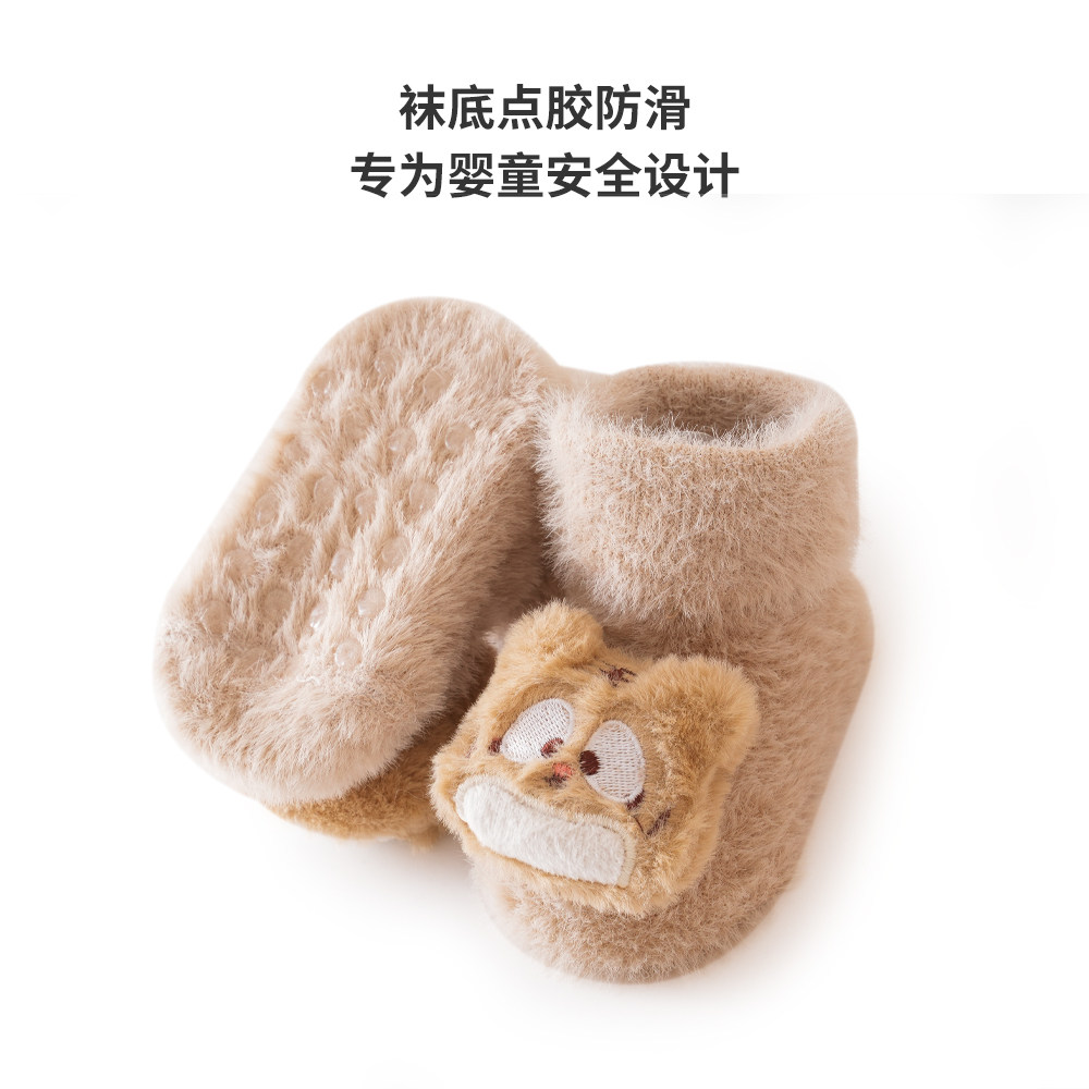 宝宝地板加绒袜子婴儿保暖加厚学步防滑袜子新生儿可爱公仔中筒袜