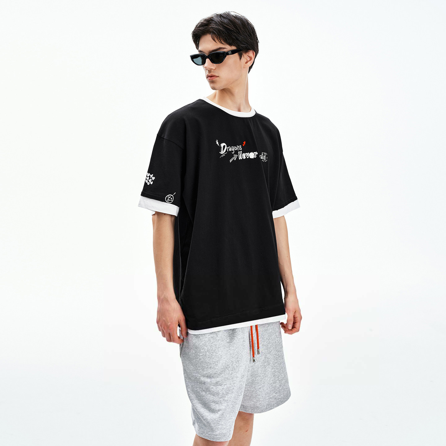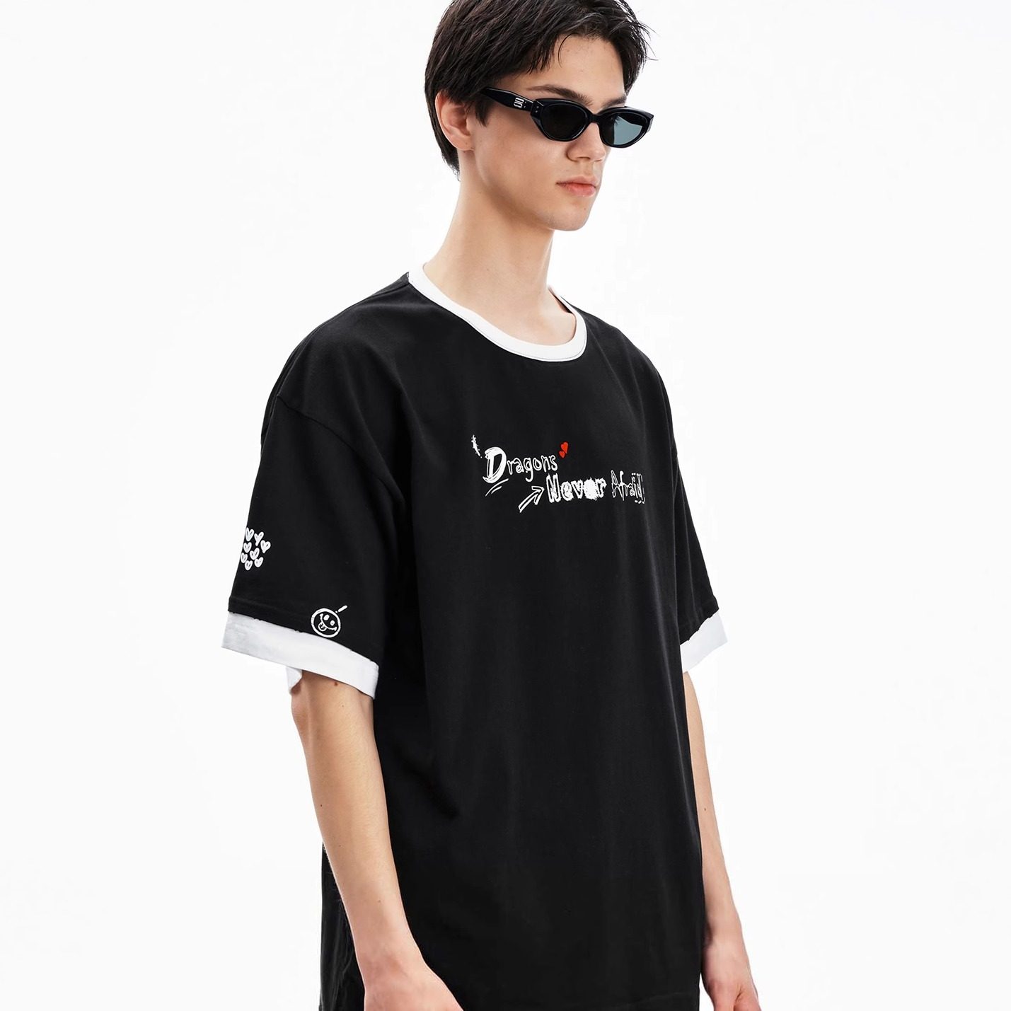 【明星同款】DNA假两件印花短袖T恤25年夏时尚潮流宽松打底衫