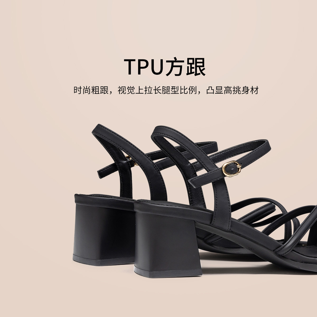 Cihi设计女鞋小猫跟凉鞋2025夏季法式复古小众简约一字带罗马单鞋