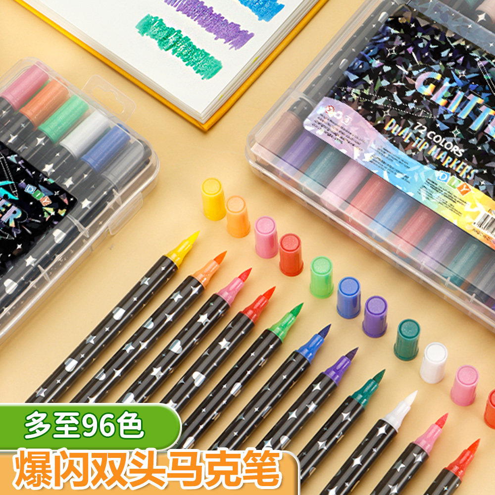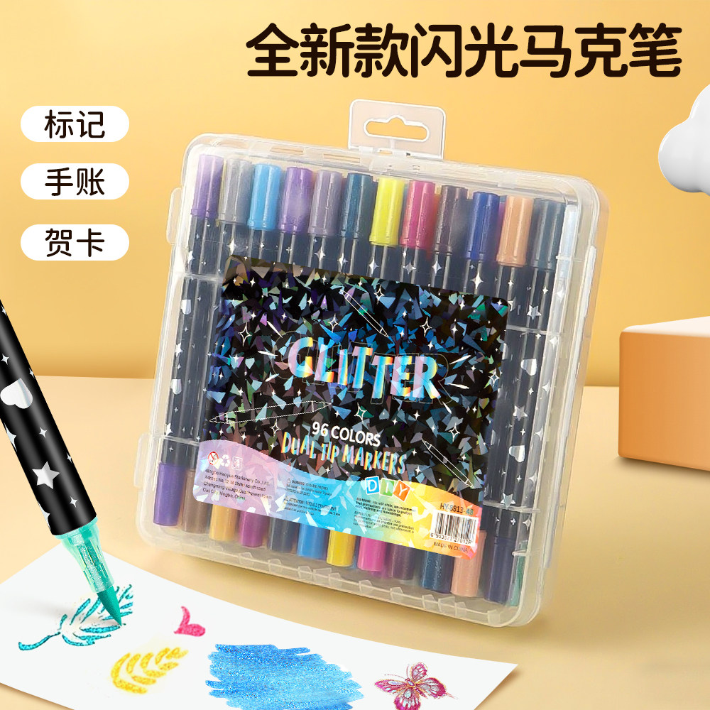 双头闪光马克笔笔荧光带闪粉闪闪啫喱荧光笔闪粉水彩笔丙烯马克笔手抄报记号笔珠光绘画亮片彩笔彩绘手账笔